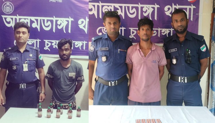 আলমডাঙ্গা ব্যুরো: আলমডাঙ্গার মুন্সিগঞ্জ ক্যাম্প পুলিশ পৃথক মাদক বিরোধী অভিযান চালিয়ে ট্যাপেন্টাডল ট্যাবলেট ও হোমিওপ্যাথিক এলকোহলসহ মাদক কারবারী লাল মিয়া ও বিপুল হোসেনকে গ্রেফতার করেছে। গত রোববার সন্ধ্যায় ও রাতে অভিযান চালিয়ে জেহালা মাঠপাড়ার থেকে লাল মিয়াকে ৫০পিস ট্যাপেন্টাডল ট্যাবলেট ও কমলাপুর মাধবীতলা পারঘাট নদীর পাড় থেকে বিপুল হোসেনকে ৯ বোতল হোমিওপ্যাথিক এলকোহলসহ গ্রেফতার করে। জানা গেছে, উপজেলার জেহালা ইউনিয়নের জেহালা অঘরনাথপাড়ার মৃত মিজানুর রহমানের ছেলে লাল মিয়া (৪০) দীর্ঘদিন ধরে বাজারে বিক্রয় নিষিদ্ধ মাদক দ্রব্য ট্যাপেন্টাডল ট্যাবলেট বিক্রর করে। সে ইউনিয়নের বিভিন্ন গ্রামে ঘুরে ঘুরে মাদক বিক্রয় করে বেড়ায়। রোববার রাতে আলমডাঙ্গা থানার অফিসার ইনচার্জ মাসুদুর রহমান (পিপিএম)’র নেতৃত্বে মুন্সিগঞ্জ ক্যাম্প পুলিশের ইনচার্জ এসআই আলমগীর কবীর সঙ্গীয় ফোর্স নিয়ে মাদক বিরোধী অভিযান পরিচালনা করে। অভিযান পরিচালনাকালে গোপন সংবাদের ভিত্তিতে জানতে পেরে জেহালা মাঠপাড়ায় অভিযান চালিয়ে লাল মিয়াকে ৫০ পিস ট্যাপেন্টাডল ট্যাবলেটসহ গ্রেফতার করে। এদিকে, চুয়াডাঙ্গা সদর উপজেলার বোয়ালমারি গ্রামের জিন্নাত আলীর ছেলে বিপুল হোসেন (৩১) দীর্ঘদিন ধরে হোমিওপ্যাথিক এলকোহল বিক্রয় করে। গোপন সংবাদের ভিত্তিতে মুন্সিগঞ্জ ক্যাম্প পুলিশ কমলাপুর মাধবীতলা পারঘাট নদীর পাড়ে অভিযান চালিয়ে বিপুল হোসেনকে গ্রেফতার করে। তার নিকট থেকে উদ্ধার করে ৯ বোতল এলকোহল। এ বিষয়ে আলমডাঙ্গা থানায় মাদকদ্রব্য নিয়ন্ত্রণ আইনে পৃথক দুটি মামলা দায়ের করা হয়েছে।