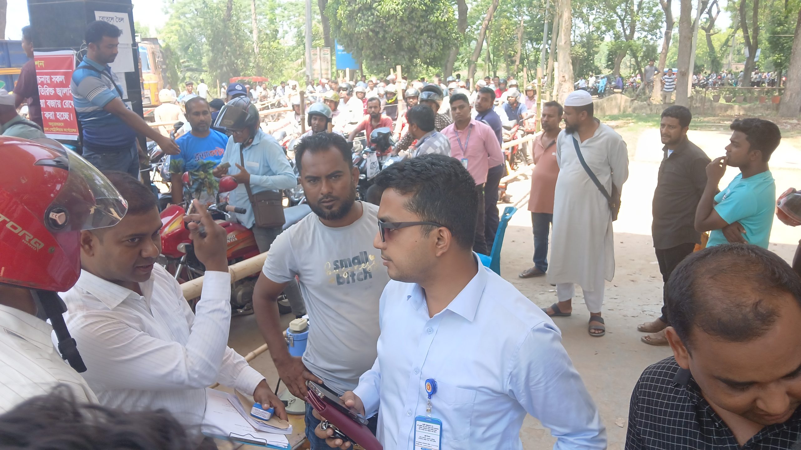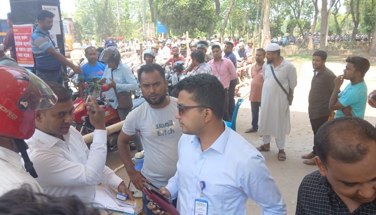 তেল নিতে আসা মোটরসাইকেল চালকদের বৈধ কাগজপত্র যাচাই করেন জেলা প্রশাসনের সহকারী কমিশনার ও নির্বাহী ম্যাজিস্ট্রেট শাকিল মোঃ ছফিউল্লাহ। পাশাপাশি শহরের বিভিন্ন গুরুত্বপূর্ণ মোড়ে মোড়ে মোটরসাইকেলের কাগজপত্র যাচাই-বাছাই করা হয়।