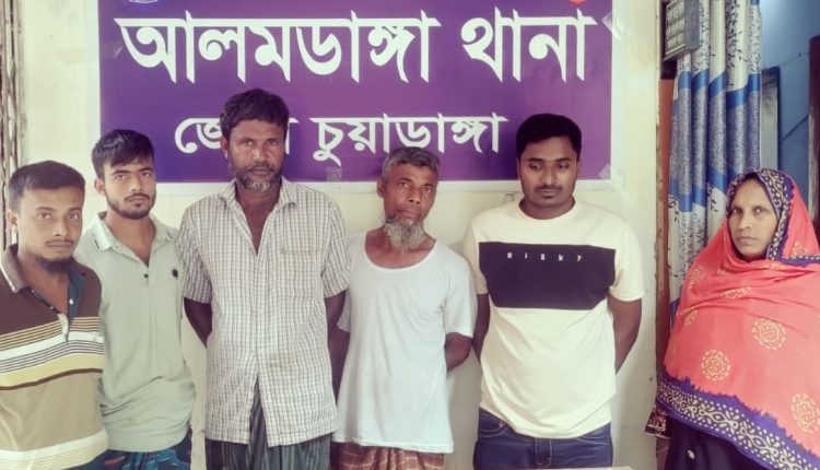 আলমডাঙ্গা ব্যুরো: আলমডাঙ্গায় বিভিন্ন মামলা ও গ্রেফতারি পরোয়ানাভুক্ত আসামি নারীসহ ৬জনকে গ্রেফতার করেছে পুলিশ। গত পরশু শুক্রবার রাতে থানা এলাকার বিভিন্ন গ্রামে অভিযান চালিয়ে তাদেরকে গ্রেফতার করে নিয়ে আসে। গতকাল শনিবার তাদেরকে আদালতে প্রেরণ করা হয়েছে। জানা গেছে, উপজেলার চিৎলা ইউনিয়নের চিৎলা গ্রামের দুটি পক্ষ এপ্রিল মাসে আলমডাঙ্গা থানায় এজাহার দায়ের করে। জিনারুল পক্ষ এজাহার দায়ের করেন ১৭ এপ্রিল ও শাহজামাল এজাহার দায়ের করেন ২০ এপ্রিল। আলমডাঙ্গা থানার অফিসার ইনচার্জ মামলা দুটি থানার অফিসার দিয়ে তদন্ত করে রিপোর্ট আদালতে প্রেরণ করে। আদালতে কোনো পক্ষ উপস্থিত না হওয়ায় দুটি মামলার আসামিদের বিরুদ্ধে গ্রেফতারি পরোয়ানা জারি করেন। আসামিদের গ্রেফতারি পরোয়ানা পেয়ে আলমডাঙ্গা থানার অফিসার ইনচার্জ মাসুদুর রহমান (পিপিএম)’র নেতৃত্বে থানা ও ক্যাম্প পুলিশের অফিসার ফোর্স অভিযান চালিয়ে উভয় পক্ষের ৬জনকে গ্রেফতার করে। গ্রেফতারকৃত আসামিরা হলেন-চিৎলা গ্রামের মৃত শাহাদৎ মন্ডলের দুই ছেলে জিনারুল ইসলাম (৫৫) ও ইকরামুল হোসেন (৩৩), জিনারুল ইসলামের ছেলে হাশর আলী (২৫), একই গ্রামের পালপাড়ার বুধই মন্ডলের ছেলে শাহাজামাল (৫০), শাহজামালের স্ত্রী মালা খাতুন (৪৫) এবং ছেলে জনি (৩০)। আদালত থেকে গ্রেফতারি পরোয়ানা জারি হওয়ার পর তারা সবাই পালিয়ে ছিল। ২৫ জুলাই রাতে গোপন সংবাদের ভিত্তিতে তাদেরকে গ্রেফতার করে নিয়ে আসে। তাদেরকে সংশ্লিষ্ট মামলায় আদালতে প্রেরণ করা হয়েছে।