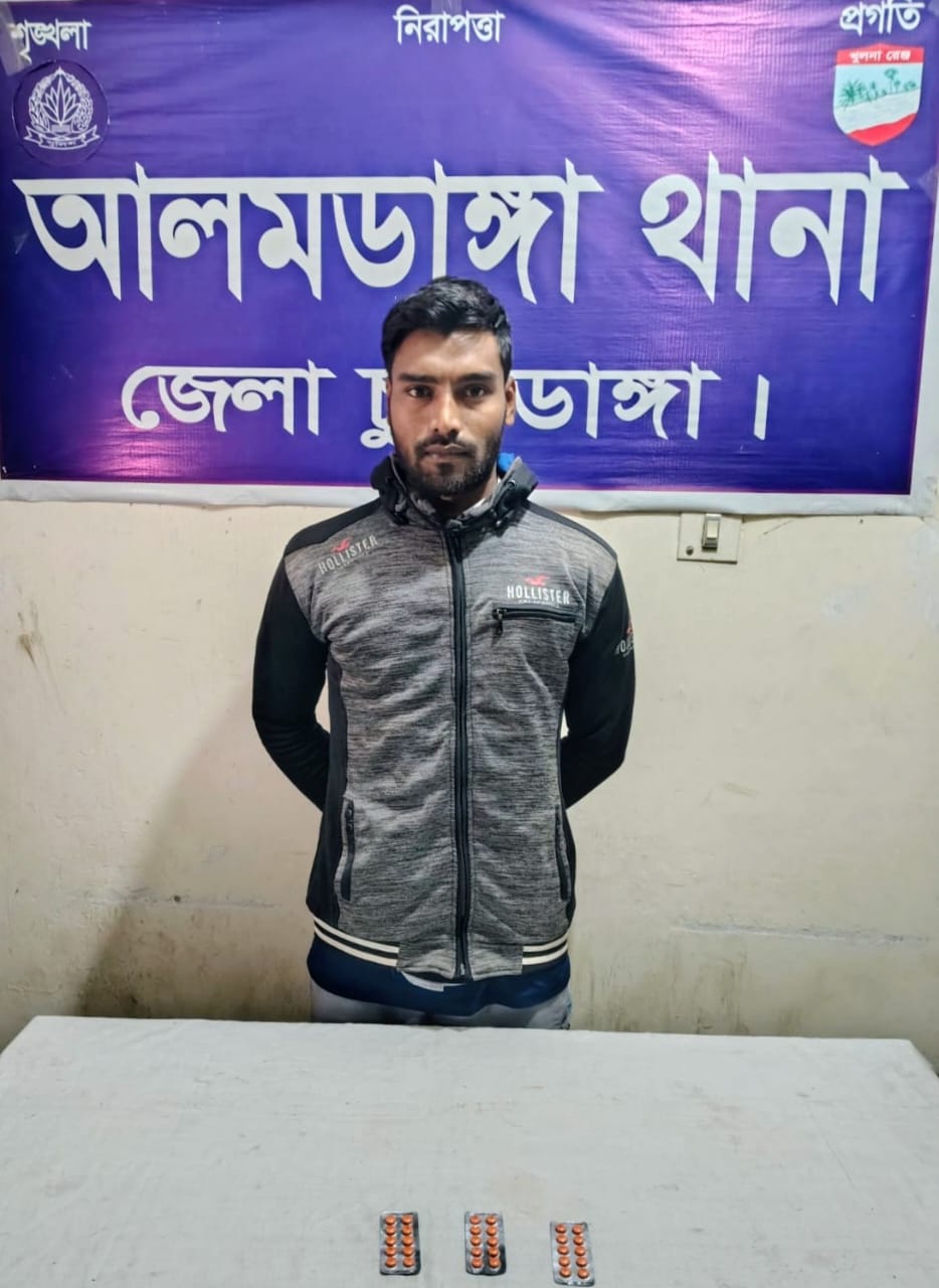 আলমডাঙ্গা অফিসঃ আলমডাঙ্গা থানার পুলিশ মাদকবিরোধী অভিযানে ৩০ (ত্রিশ) পিস ট্যাপেন্টাডল ট্যাবলেটসহ এক যুবককে গ্রেপ্তার করেছে।
