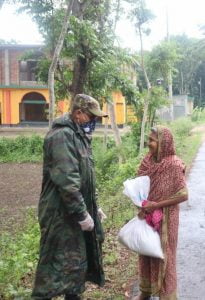২। করোনা পরিস্থিতিতে থমকে যাওয়া পঙ্গু, অসহায় এবং সত্যিকারের দুস্থ মানুষের মাঝে শনিবার ২ মে বিভিন্ন স্থানে খাদ্য সহায়তা অব্যাহত রেখেছে যশোর সেনানিবাসের সেনাসদস্যরা।