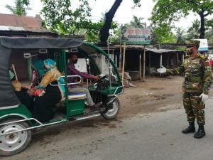 ৩। সরকারী আদেশ অমান্য কওে গাড়ীনিয়ে রাস্তায় বের হওয়ায় এক ইজিবাইক চালক ও যাত্রীদেও জিজ্ঞাসাবাদ করেন যশোর সেনানিবাসের এক সেনাসদস্য।
