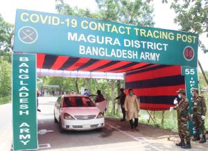 ৬। কোভিড-১৯ মোকাবেলায়যশোর সেনানিবাস কর্তৃক স্থাপনকৃত কন্টাক্ট ট্রেসিং পোষ্ট তদারকি করছেন যশোর সেনানিবাসের সেনাসদস্যরা।