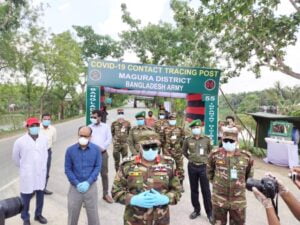 করোনা ভাইরাস প্রতিরোধকল্পে বাংলাদেশ সেনা বাহিনী পরিচালিত বিভিন্ন কার্যক্রমএর ধারাবাহিকতায়, সেনাবাহিনীর পক্ষথেকে আজও যশোর সেনানিবাসের সেনাসদস্যরা বিভিন্ন ধরনের কার্যক্রম সম্পন্ন করেছে। রমজান মাস উপলক্ষ্যে নিত্যপন্যের দাম নিয়ন্ত্রণ রাখতে নিয়মিত বাজার মনিটারিং, ব্যবসায়ীদেরকে সচেতনতামূলক বক্তব্য প্রদান, রাস্তায় অপ্রয়োজনীয় যানবাহন নিয়ন্ত্রণ, যশোর সেনানিবাস কর্তৃক মাগুরায় স্থাপনকৃত কন্টাক্টট্রেসিং পোষ্ট তদারকিকরা, সরকারী নির্দেশনা অনুযায়ী সঠিক সময়ের মধ্যে দোকানবন্ধ করতে এবং সামাজিক দুরুত্ব বজায় রেখে বিক্রয় কার্যক্রম পরিচালনার জন্য ব্যবসায়ীদেরকে প্রয়োজনীয় বক্তব্য প্রদান, নিত্যপ্রয়োজনীয় কাজে বাহিরে বের হলে মাস্ক পরিধান করতে উৎসাহ প্রদানসহ নানাবিধকার্যক্রম সম্পন্ন করা হয়েছে। বিশেষ করে বেনাপোলস্থল বন্দর দিয়ে আগত নাগরিকদেরকে নিয়মিত স্ক্রিনিং কার্যক্রম চলমান রয়েছে।