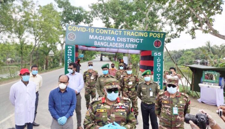 করোনা ভাইরাস প্রতিরোধকল্পে বাংলাদেশ সেনা বাহিনী পরিচালিত বিভিন্ন কার্যক্রমএর ধারাবাহিকতায়, সেনাবাহিনীর পক্ষথেকে আজও যশোর সেনানিবাসের সেনাসদস্যরা বিভিন্ন ধরনের কার্যক্রম সম্পন্ন করেছে। রমজান মাস উপলক্ষ্যে নিত্যপন্যের দাম নিয়ন্ত্রণ রাখতে নিয়মিত বাজার মনিটারিং, ব্যবসায়ীদেরকে সচেতনতামূলক বক্তব্য প্রদান, রাস্তায় অপ্রয়োজনীয় যানবাহন নিয়ন্ত্রণ, যশোর সেনানিবাস কর্তৃক মাগুরায় স্থাপনকৃত কন্টাক্টট্রেসিং পোষ্ট তদারকিকরা, সরকারী নির্দেশনা অনুযায়ী সঠিক সময়ের মধ্যে দোকানবন্ধ করতে এবং সামাজিক দুরুত্ব বজায় রেখে বিক্রয় কার্যক্রম পরিচালনার জন্য ব্যবসায়ীদেরকে প্রয়োজনীয় বক্তব্য প্রদান, নিত্যপ্রয়োজনীয় কাজে বাহিরে বের হলে মাস্ক পরিধান করতে উৎসাহ প্রদানসহ নানাবিধকার্যক্রম সম্পন্ন করা হয়েছে। বিশেষ করে বেনাপোলস্থল বন্দর দিয়ে আগত নাগরিকদেরকে নিয়মিত স্ক্রিনিং কার্যক্রম চলমান রয়েছে।