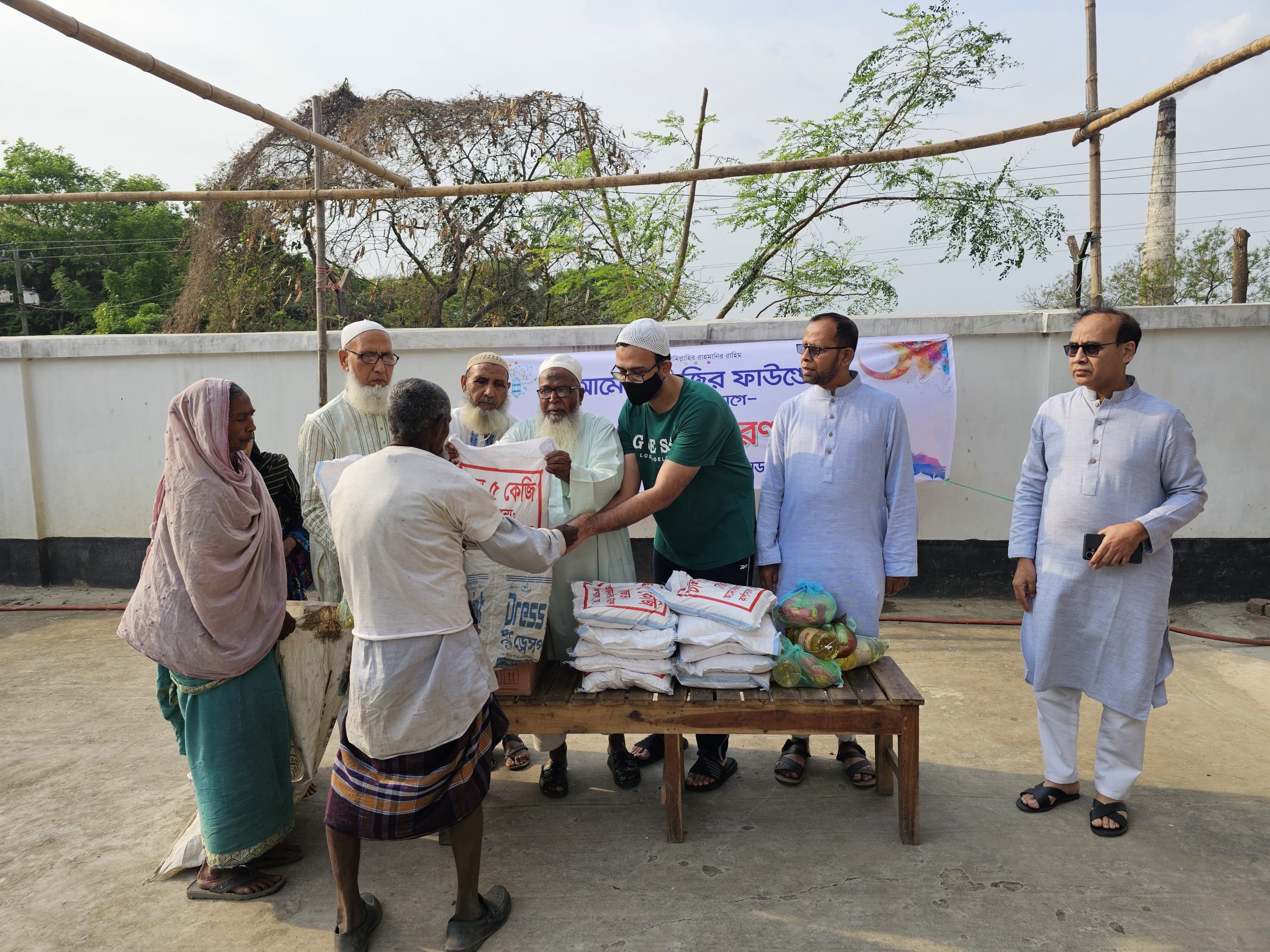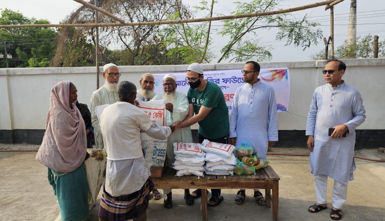 কার্পাসডাঙ্গা প্রতিনিধি: দামুড়হুদা উপজেলার বিভিন্ন এলাকার প্রায় এক হাজার অসহায় ও অস্বচ্ছল মানুষের মাঝে ঈদসামগ্রী বিতরণ করেছে আমেনা–নজির ফাউন্ডেশন। গতকাল মঙ্গলবার সকাল ৯টায় কার্পাসডাঙ্গার নজির আহম্মেদ প্লাজা প্রাঙ্গণে এ আয়োজন অনুষ্ঠিত হয়। ঈদের আনন্দ সবার সঙ্গে ভাগাভাগি করে নিতে উপহার হিসেবে সেমাই, চাল, ডাল, চিনি প্রভৃতি নিত্যপ্রয়োজনীয় খাদ্যসামগ্রী বিতরণ করা হয়। উপহার পেয়ে কহিনুর বেগম বলেন, “আমাদের আয় খুব কম। ঈদের এই প্যাকেট পেয়ে অনেক খুশি হয়েছি। আয়োজকরা জানান, সমাজে অনেক মানুষ রয়েছেন যাদের আয় সীমিত। বিশেষ করে ঈদের মতো উৎসবের সময়ে তাদের পাশে দাঁড়ানো সমাজের সচ্ছল মানুষের দায়িত্ব। সেই ভাবনা থেকেই অসহায় মানুষের মুখে হাসি ফোটাতে এ উদ্যোগ নেওয়া হয়েছে। এই মানবিক দায়িত্ববোধ থেকেই আমেনা–নজির ফাউন্ডেশন প্রতি বছর নিয়মিতভাবে এমন উদ্যোগ গ্রহণ করে আসছে। উল্লেখ্য, কার্পাসডাঙ্গার কৃতি সন্তান মহান মুক্তিযুদ্ধের বৃহত্তর কুষ্টিয়ার অন্যতম সংগঠক প্রয়াত বীর মুক্তিযোদ্ধা আলহাজ্ব ডা. নজির আহম্মদ বিশ্বাস আজীবন অসহায় মানুষের পাশে দাঁড়িয়েছেন এবং বিভিন্ন জনকল্যাণমূলক কাজে নিজেকে সম্পৃক্ত রেখেছিলেন। তাঁর সেই মানবিক আদর্শকে ধারণ করেই ফাউন্ডেশনটির কার্যক্রম পরিচালিত হচ্ছে। এ উপস্থিত ছিলেন মিমপেক্স গ্রুপের ব্যবস্থাপনা পরিচালক এম. সাঈদুজ্জামান ও তাঁর সহধর্মিণী নিলুফার ইয়াসমিন, আলহাজ্ব আমিরুজ্জামান বাচ্চু, আলহাজ্ব ওয়াহেদুজ্জামান পল্টু, মোঃ তারিকুজ্জামান, মোসাররাত আরা, অধ্যাপক গোলাম সাদিক, ডা.আলহাজ্ব আবুল কাশেমসহ স্থানীয় গণ্যমান্য ব্যক্তিবর্গ।