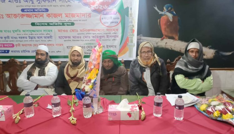 কুরআন ফাউন্ডেশন এর খুলনা বিভাগীয় সেক্রেটারি কাসিমুল উলুম লাল মাহমুদ কওমি মাদ্রাসা কুষ্টিয়া মুহাতামিম হাফেজ মাওলানা আবু সুফিয়ান সাহেব ।প্রধান অতিথি হিসেবে উপস্থিত ছিলেন কুষ্টিয়া চেম্বারস অফ কমার্সের পরিচালক আখতারুজ্জামান কাজল মাজমাদার ।বিশেষ অতিথি হিসেবে উপস্থিত ছিলেন কুষ্টিয়া কেন্দ্রীয় জামে মসজিদের খতিব হাফেজ মাওলানা মুফতি আসাদুজ্জামান সাহেব, হাফেজ কারী মাওলানা বরকতউল্লাহ আজমী সাহেব, মাহতামিম মারকাজুল ওয়াজ কোরআন সুন্নাহ মাদ্রাসা মিরপুর। হাফেজ মাওলানা মনিরুজ্জামান সাহেব মহা তামিম হামিউস সুন্নাহ মাদ্রাসা মোল্লাবাড়ি