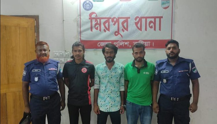 কুষ্টিয়া প্রতিনিধি: কুষ্টিয়ার মিরপুরে পূর্বশত্রুতার জেরে জাসদ কর্মী জমির উদ্দিনকে প্রকাশ্যে পিটিয়ে হত্যার ঘটনায় অভিযুক্ত ছাত্রদল নেতাসহ তিনজনকে আটক করা হয়েছে। গতকাল মঙ্গলবার ভোররাতে উপজেলার আমবাড়িয়া ইউনিয়নের আমবাড়িয়া গ্রামে অভিযান চালিয়ে সাবেক এক ইউপি চেয়ারম্যানের বাড়ি থেকে তাদের আটক করে পুলিশ। আটকরা হলেন, মিরপুর উপজেলার আমলা ইউনিয়নের মিটন গ্রামের সোনারুল খানের ছেলে অনিক খান(২৪), একই গ্রামের মৃত ফারুক হোসেনের ছেলে নাঈম(২৩) ও নিমাই চাঁদের ছেলে নাঈম(২৩)। এদের মধ্যে অনিক আমলা ইউনিয়ন ছাত্রদলের সভাপতি। এর আগে গত সোমবার দুপুরে আমলা ইউনিয়নের মিটন এলাকার ঈদগাহে সামনে পূর্ব শত্রুতার জের ধরে অনিক কয়েকজনকে সাথে নিয়ে প্রকাশ্যে জমির উদ্দিনের উপর হামলা চালায়। গুরুত্বর আহত অবস্থায় তাকে উদ্ধার করে কুষ্টিয়া জেনারেল হাসপাতালে ভর্তি করলে চিকিৎসাধীন অবস্থায় সেখানে তার মৃত্যু হয়। নিহতের স্ত্রী জোৎস্না খাতুনের দাবি প্রায় দেড় বছর আগে কোন এক ঘটনায় স্থানীয় চায়ের দোকানে অনিককে থাপ্পড় মেরেছিল তার স্বামী। সেই ঘটনার প্রতিশোধ নিতেই তাকে হত্যা করা হয়েছে। মিরপুর থানার ভারপ্রাপ্ত কর্মকর্তা (ওসি) মোমিনুল ইসলাম জানান, আমবাড়িয়া গ্রাম থেকে ঘটনার সাথে জড়িত তিনজনকে আটক করা হয়েছে। এ ঘটনায় মামলা দায়েরের প্রস্তুতি প্রক্রিয়াধীন রয়েছে।