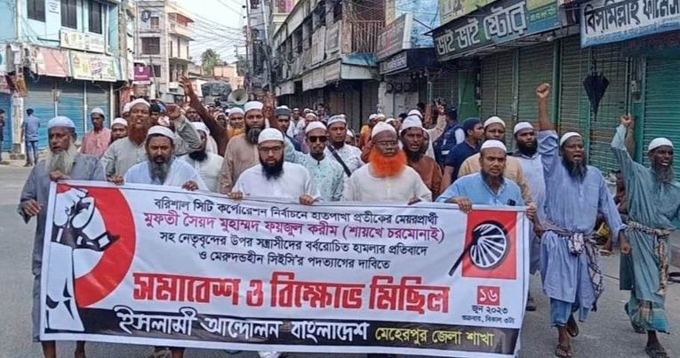 মেহেরপুর অফিস জানিয়েছে, মেহেরপুর জেলা ইসলামী আন্দোলন বাংলাদেশের উদ্যোগে বিক্ষোভ মিছিল ও সমাবেশ অনুষ্ঠিত হয়েছে। গতকাল শুক্রবার বিকেলে মেহেরপুর প্রেসক্লাবের সামনে সমাবেশ অনুষ্ঠিত হয়। ইসলামী আন্দোলন বাংলাদেশ মেহেরপুর জেলা শাখার ভারপ্রাপ্ত সভাপতি মো. খাদেমুল ইসলামের সভাপতিত্বে অন্যদের মধ্যে বক্তব্য রাখেন ইসলামী আন্দোলন বাংলাদেশ মেহেরপুর জেলা শাখা সাধারণ সম্পাদক মোহাম্মদ রাশেদুল ইসলাম, ইসলামী যুব আন্দোলনের সভাপতি মোহাম্মদ আশরাফ শাজাহান, ইসলামী ছাত্র আন্দোলন মেহেরপুর জেলা শাখার সভাপতি মো. ইব্রাহিম খলিল আবির প্রমুখ। এর আগে মেহেরপুর কোর্ট মোড় থেকে বিক্ষোভ মিছিল বের করা হয়। ইসলামী আন্দোলন মেহেরপুর জেলা শাখার ভারপ্রাপ্ত সভাপতি মো. খাদেমুল ইসলামের নেতৃত্বে বিক্ষোভ মিছিলটি শহরের প্রধান প্রধান সড়ক প্রদক্ষিণ করে মেহেরপুর প্রেসক্লাবের সামনে এসে বিক্ষোভ মিছিলটি শেষ হয়।