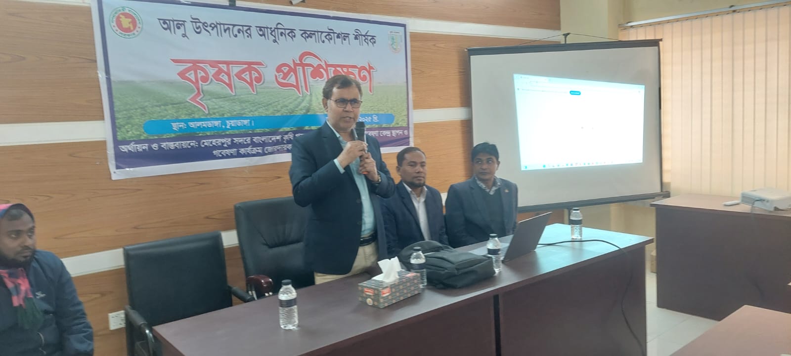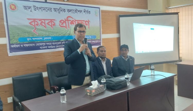 স্টাফ রিপোর্টার:চুয়াডাঙ্গায় আলু উৎপাদন বৃদ্ধি ও সঠিক সংরক্ষণ পদ্ধতি সম্পর্কে কৃষকদের দক্ষ করে তুলতে “আলু উৎপাদনের আধুনিক কলাকৌশল” শীর্ষক কৃষক প্রশিক্ষণ কর্মশালা অনুষ্ঠিত হয়েছে।