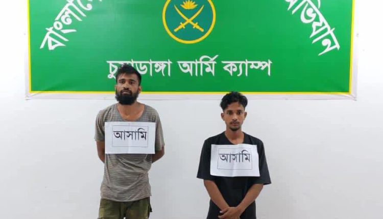 আটককৃত তারিক আহমেদ জিহাদ চুয়াডাঙ্গা শহরের কলেজ পাড়া এলাকার আয়ুব আলীর ছেলে এবং আব্দুর রহমান অমিত মসজিদপাড়া এলাকার মৃত প্রভাত সাহার ছেলে।