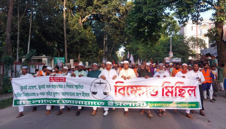 চুয়াডাঙ্গায় জামায়াতে ইসলামীর বিক্ষোভ মিছিল: জাতীয় নির্বাচনসহ ৫ দফা দাবি।