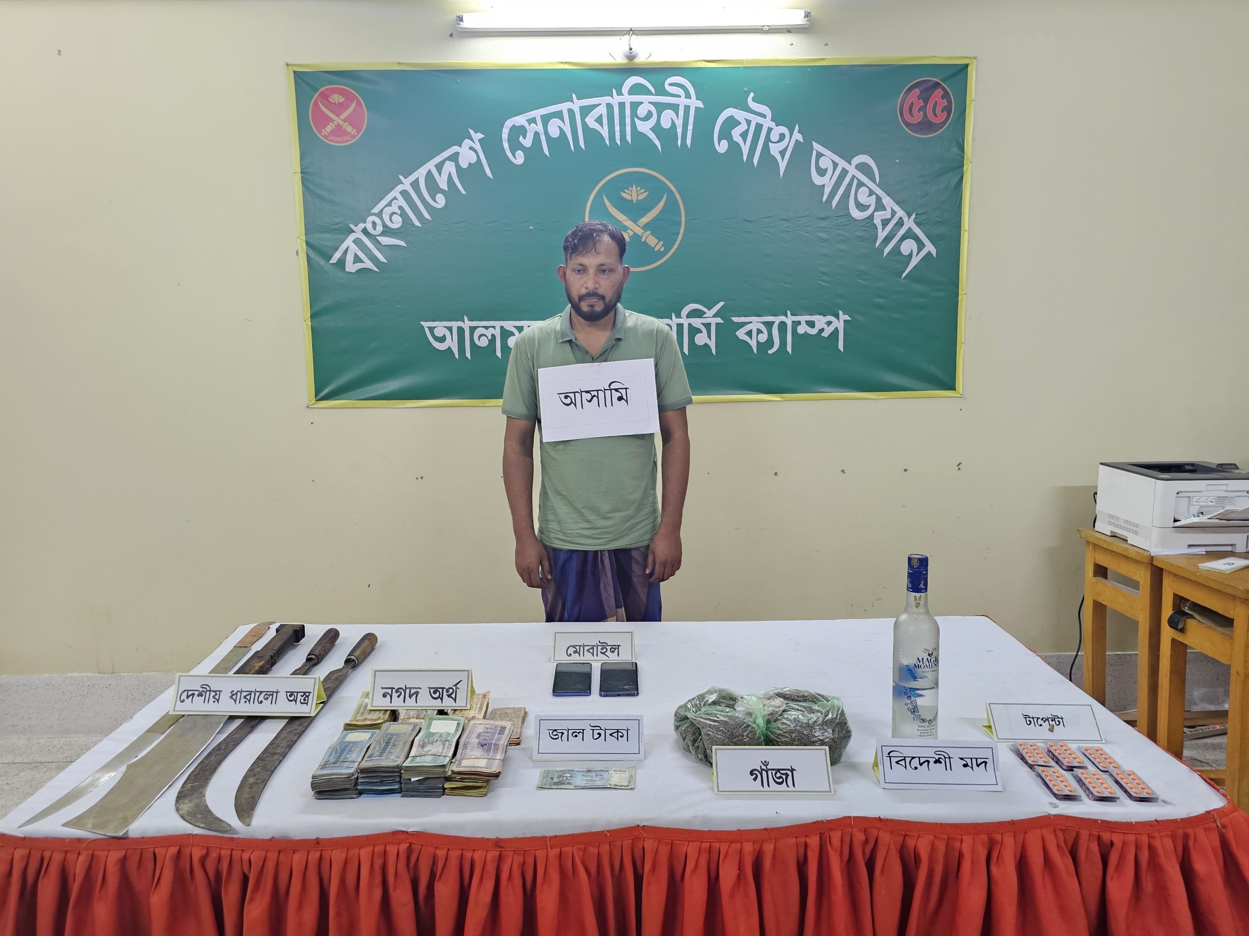 উদ্ধারকৃত মালামাল ও আটক আসামি