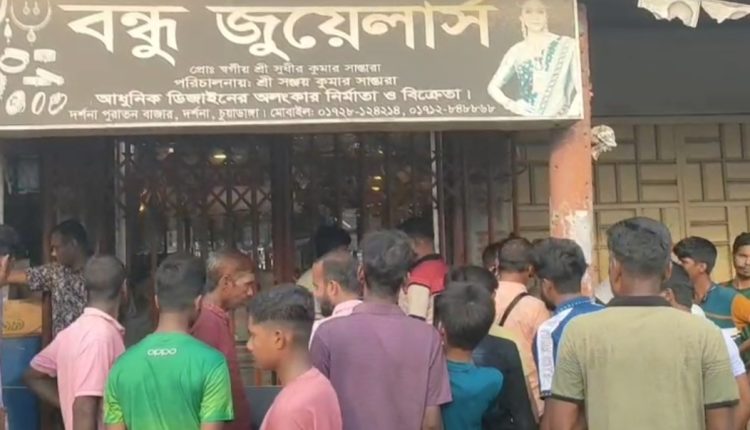 দর্শনা অফিস: চুয়াডাঙ্গার দর্শনা পুরাতন বাজারের প্রাণকেন্দ্রে অবস্থিত ‘বন্ধু জুয়েলার্স’-এ মঙ্গলবার বিকেলে দিনে-দুপুরে ক্রেতা সেজে দোকানির উপর হামলার ঘটনা ঘটেছে। দুর্বৃত্তরা দোকানে ঢুকে মালিক সঞ্জয় কুমার সান্তারাকে কুপিয়ে গুরুতর জখম করে।