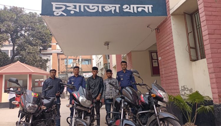 চুয়াডাঙ্গায় চোরাই ৪ মোটরসাইকেলসহ চোরচক্রের দুই সদস্য আটক