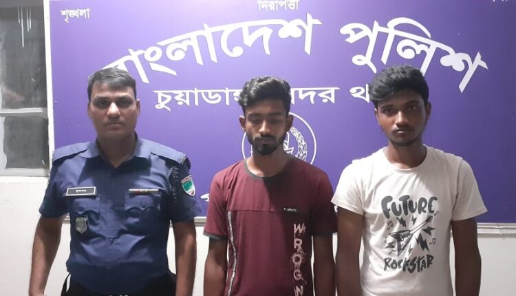 মামলা সূত্রে জানাগেছে, গত ৩ জুন বিসিক মেলা থেকে ফেরার পথে চুয়াডাঙ্গা হকপাড়ার মধ্যে দুই কলেজ ছাত্রকে দেশীয় অস্ত্রের মুখে জিম্মি করে নগদ ১০ হাজার ৫শ টাকা ও দুটি মোবাইল ফোন ছিনিয়ে নেয় তিন ছিনতাইকারী। পরে এ ঘটনায় ভুক্তভোগী কলেজছাত্র জীবননগর ইক্তারপুর গ্রামের আব্দুস সালাম চুয়াডাঙ্গা সদর থানায় লিখিত অভিযোগ দায়ের করেন। অভিযোগ তদন্তকারী কর্মকর্তা চুয়াডাঙ্গা সদর থানার এসআই শেখ হাদীউজ্জামান জানান, তথ্য প্রযুক্তি ব্যবহার করে গতকাল রোববার বিকেল সাড়ে ৫টার দিকে শহরের হকপাড়ার ও সাতগাড়ি অভিযান চালিয়ে দুই ছিনতাইকারীকে আটক করা হয়। তাদের কাছ থেকে উদ্ধার করা হয় ছিনতাইকৃত দুটি মোবাইল ফোন ও ছিনিয়ে নেয়া সাড়ে তিন হাজার টাকা।