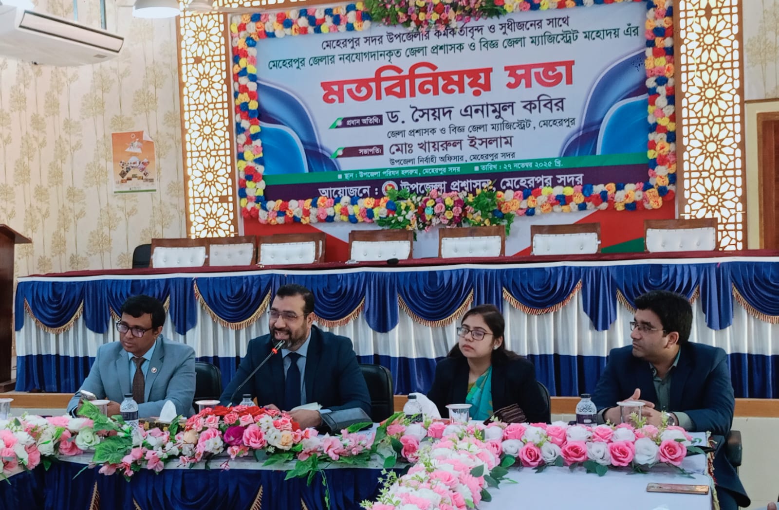 তিনি আরও বলেন, মেহেরপুরের মানুষ শান্তিপ্রিয়। মানুষের কল্যাণে প্রশাসন সর্বোচ্চ দায়িত্বশীলভাবে কাজ করে যাবে।
