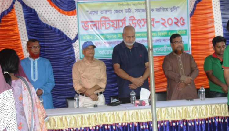 আন্দুলবাড়িয়া প্রতিনিধি: জীবননগরের স্বেচ্ছাসেবী ও অরাজনৈতিক সংগঠন জাগো আন্দুলবাড়িয়ার ভলান্টিয়ার্স উৎসব উপলক্ষ্যে আলোচনাসভা অনুষ্ঠিত হয়েছে। গতকাল মঙ্গলবার বিকেল ৪ টায় বহুমুখী মাধ্যমিক বিদ্যালয় ক্যাম্পাসে জাগো আন্দুলবাড়িয়ার উদ্যোগে এ অনুষ্ঠানের আয়োজন করা হয়। সংগঠনের সভাপতি মোল্লা মোতাহারুল ইসলাম চঞ্চলের সভাপতিত্বে অনুষ্ঠানে প্রধান অতিথি ছিলেন ঢাকা বিশ্ববিদ্যালয়ের সাবেক ছাত্রনেতা সেলিম আক্তার খান মিন্টু। অনুষ্ঠানের শুরুতেই পবিত্র ধর্মগ্রন্থ থেকে কোরআন তেলয়াত করেন মোস্তাক আহম্মেদ ও স্বাগত বক্তব্য রাখেন সভাপতি মোল্লা মোতাহারুল ইসলাম চঞ্চল। প্রধান অ্যাডমিন হৃদয় হোসেনের উপস্থাপনায় বিশেষ অতিথি হিসাবে উপস্থিত ছিলেন আন্দুলবাড়িয়া ইউনিয়ন লোকমোর্চার সভাপতি অবসরপ্রাপ্ত শিক্ষক শেখ সেকেন্দার আলী, আন্দুলবাড়িয়া প্রেসক্লাবের সভাপতি নারায়ণ ভৌমিক। বক্তব্য রাখেন, সংগঠনের প্রতিষ্ঠাতা নাজমুস সাকিব, প্রধান সন্বয়ক ইসতিয়াক আহম্মেদ, সাধারন সম্পাদক ফিরোজ আহম্মেদ, কার্যনিবাহী সদস্য হৃদয় হোসেন, শিক্ষা ও গবেষনা বিষয়ক সম্পাদক আকাশ হোসেন, প্রচার ও প্রকাশনা সম্পাদক সাখাওয়াত হোসেন সাহেব, বন ও পরিবেশ বিষয়ক সম্পাদক জিহাদুর রহমান, কার্যনিবাহী সদস্য হাচিবুল ইসলাম ও নারী নেত্রী উম্মে হাবিবা প্রমুখ। উল্লেখ্য বাংলাদেশের বিভিন্ন বিশ্ববিদ্যালয়ের শিক্ষার্থীদের সন্বয়ন ২০২১ সালে আত্মপ্রকাশ করা হয় জাগো আন্দুলবাড়িয়া সংগঠনের।