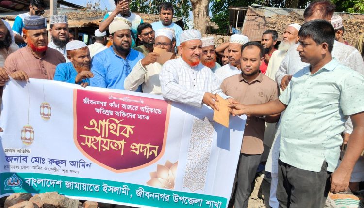 জীবননগরে অগ্নিকা-ে ক্ষতিগ্রস্ত ব্যবসায়ীদরে মাঝে জামায়াতের আর্থিক সহায়তা প্রদান