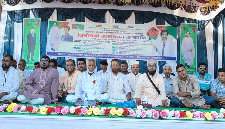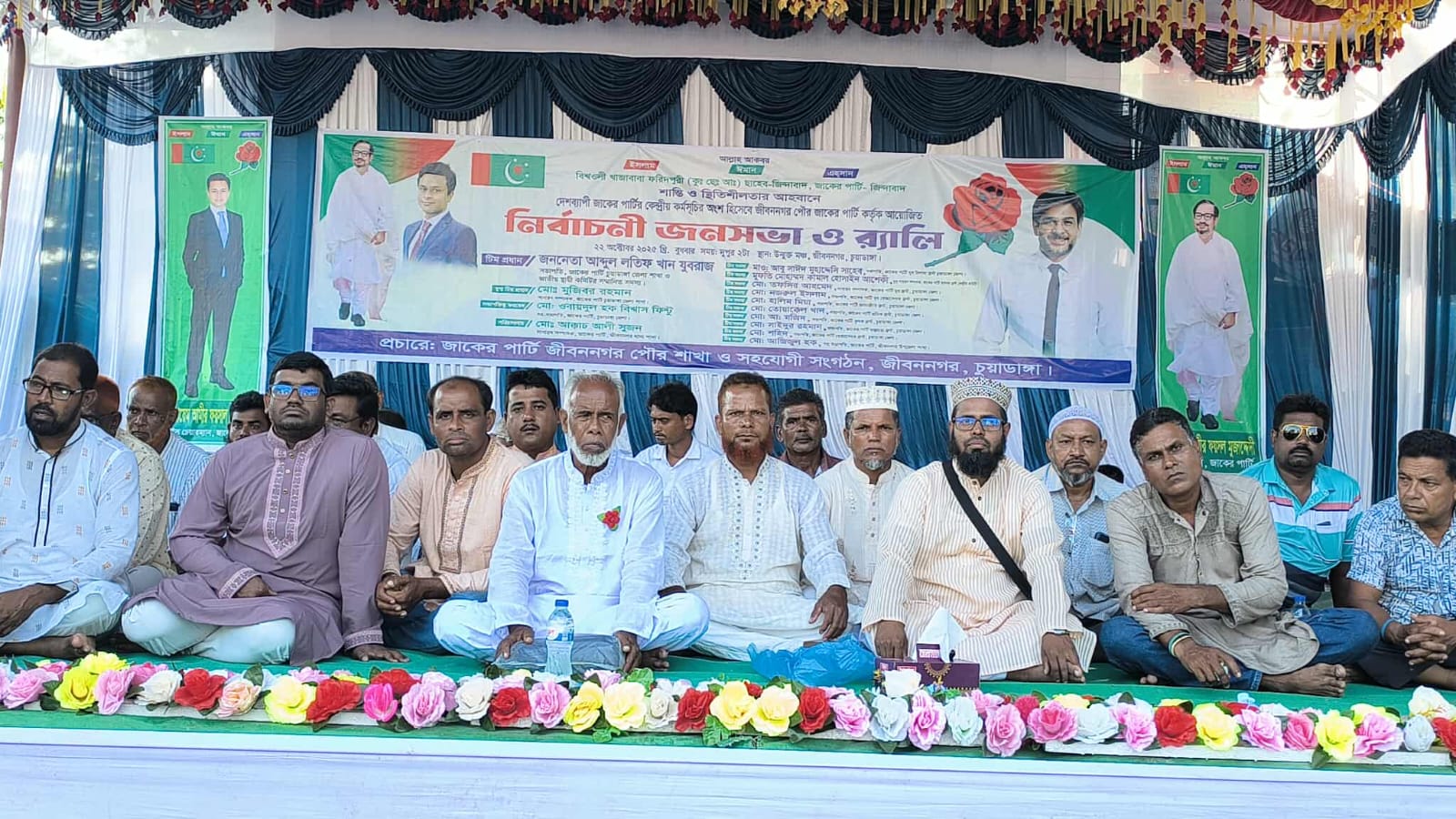 জাকের পার্টির জেলা সহ সভাপতি ওবায়দুল হক বিশ্বাস ফিন্টুর সভাপতিত্বে ও উপজেলা সাধারণ সম্পাদক আক্কাস আলী সুজনের সঞ্চালনায় অনুষ্ঠিত জনসভায় বক্তব্য রাখেন টিম প্রধান জাকের পার্টির চুয়াডাঙ্গার সভাপতি আব্দুল লতিফ খান যুবরাজ। বিশেষ অতিথির বক্তব্য রাখেন জেলা জাকের পার্টির সাধারণ সম্পাদক মুজিবর রহমান, আবু সাঈদ মুহাদ্দিসি, কামাল হোসেন আশেকী, তাফসির আহমেদ, নজরুল ইসলাম, হালিম মিয়া, তোয়াক্কেল খান ,আব্দুল মজিদ, সাইদুর রহমান, শহীদ, আজিজুল হক সহ জাকের পার্টির কর্মীবৃন্দরা।