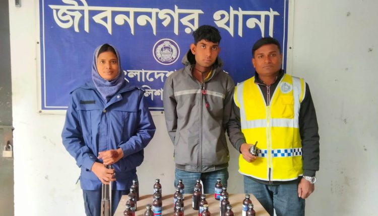 জীবননগর ব্যুরো: জীবননগরে মাদক বিরোধী অভিযান চালিয়ে ২২ বোতল ফেনসিডিলসহ এক মাদক ব্যবসায়ীকে গ্রেফতার করেছে পুলিশ। গতকাল মঙ্গলবার বেলা ৯টায় জীবননগর থানার ওসি মো. আব্দুল খালেকের নির্দেশনায় থানার উপ-পরিদর্শক মো. নাহিরুল ইসলাম সঙ্গীয় ফোর্স নিয়ে গোপন সংবাদের ভিত্তিতে সীমান্ত ইউনিয়নের গোয়ালপাড়া গ্রামের স্কুলপাড়ার মাদক ব্যবসায়ী সাদিকুল মিয়ার বাড়িতে অভিযান চালায়। এ সময় পুলিশ ২২ বোতল ফেনিসিডিলসহ গোয়ালপাড়া গ্রামের স্কুল পাড়ার মহির উদ্দিনের ছেলে মাদক ব্যবসায়ী সাদিকুর রহমানকে (২১) গ্রেফতার করে। এ ব্যাপারে জীবননগর থানায় মাদকদ্রব্য নিয়ন্ত্রণ আইনে মামলা হয়েছে।