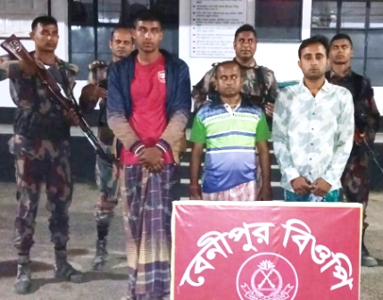 ঝিনাইদহের মহেশপুর ৫৮ বিজিবি ব্যাটালিয়ন এক প্রেস বিজ্ঞপ্তিতে জানিয়েছে, উপজেলার বেনীপুর সীমান্তের অধীন মহেশপুর উপজেলার পিপুলবাড়িয়া গ্রামের কাওছার আলীর ছেলে ভারত মানব পাচারের সাথে জড়িত মিরাজকে (২৮) আটক করা হয়। বেনীপুর বিওপির হাবিলদার আব্দুল কাদের সঙ্গীয় ফোর্স নিয়ে তাকে পিপুলবাড়িয়া গ্রামের জালাল বিশ^াসের ধানী জমির পাশের রাস্তা হতে আটক করে। এসময় তার সাথে থাকা ধুর রাজবাড়ী জেলার গোয়ালন্দ উপজেলার ইদ্রিস মিয়াপাড়ার হাবি বিশ^াসের ছেলে সোহাগ (৩০), চাঁদপুর জেলার ফরিদগঞ্জ উপজেলার খুরুমখালী গ্রামের পরেশ চন্দ্র দাসের ছেলে বিকাশ চন্দ্র দাস (৩৫) ও তার স্ত্রী (২৮) এবং মেদিনীপুর বিওপির হাবিলদার জলিল মোল্লার নেতৃত্বে বিজিবি সদস্যরা চ্যাংখালীতে অভিযান এক নারী ধুরকে (৪৫) আটক করে। এছাড়াও মেদিনীপুর বিওপির হাবিলদার জলিল মোল্লার নেতৃত্বে মেদিনীপুর সীমান্তের একটি আম বাগানে অভিযান পরিচালনা করা হয়। অভিযান চালিয়ে ৪৯ বোতল ভারতীয় মদ উদ্ধার করা হয় এবং উথলী বিওপির হাবিলদার শাহানুর আলমের নেতৃত্বে বিজিবির একটি টহল দল শিংনগর গ্রামের হোটেল মোড় নামক স্থানে বিকেল ৩টার দিকে অভিযান পরিচালনা করা হয়। অভিযানকালে ৭১৫ প্যাকেট ভর্তি মায়ো রোজ নামে ২১ হাজার ৪৫০ পিচ ট্যাবলেট উদ্ধার করা হয়। এসময় মহিলা কারবারিসহ তার সহযোগী উপজেলার মাধবখালী গ্রামের নাসির উদ্দীনের ছেলে সাদ্দামকে আটক করা হয়। তবে বিজিবির পক্ষ হতে আটক দুই মহিলা ধুর ও এক নারী কারবারীর নাম প্রকাশ করা হয়নি। মহেশপুর ৫৮ বিজিবি ব্যাটালিয়নের ভারপ্রাপ্ত কোয়ার্টার মাস্টার সহকারী পরিচালক সাইফুল ইসলাম ৫জন ধুরসহ ৪৯ বোতল মদ উদ্ধারের তথ্য সাংবাদিকদের নিশ্চিত করেছেন।