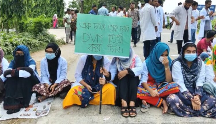 ঝিনাইদহ প্রতিনিধি: ঝিনাইদহ সরকারি ভেটেরিনারি কলেজে ডক্টর অব ভেটেরিনারি মেডিসিন (ডিভিএম) ডিগ্রি প্রদানের দাবিতে শিক্ষার্থীরা রাস্তা অবরোধ করে বিক্ষোভ সমাবেশ করেছে। মঙ্গলবার সকাল ১০টা থেকে বেলা ১২টা পর্যন্ত কলেজের প্রধান ফটকের সামনে ঝিনাইদহ-চুয়াডাঙ্গা মহাসড়ক অবরোধ করে এ কর্মসূচির পালন করে তারা। এসময় ঝিনাইদহ পিবিআই’র একটি গাড়ি শিক্ষার্থীদের ওপর চালিয়ে দেয়া হয় বলে অভিযোগ করে শিক্ষার্থীরা। এতে ফাহিম ও তমাল নামে দুই শিক্ষার্থী আহত হয়। ঘটনার পর গাড়ীতে হামলা করলে গাড়িটি পিছিয়ে নিয়ে যায় চালক। কলেজের ছাত্র সংসদের ভিপি সাইদুজ্জামান মুরাদ জানান, ডক্টর অব ভেটেরিনারি মেডিসিন (ডিভিএম) ডিগ্রির বিজ্ঞপ্তিতে ভর্তি হলেও বিএসসি ভেট সাইন্স এবং এএইচএস ডিগ্রি প্রদান করার চেষ্টা করছে কর্তৃপক্ষ। তাই বিএসসি ভেট সাইন্স এবং এএইচএস ডিগ্রি বাতিল করে ডিভিএম ডিগ্রি প্রদানের দাবিতে তারা এই কর্মসূচী পালন করছে। সকাল ১০ টার দিকে তারা কর্মসূচী শুরু করে। ১০ টা ৪৫ মিনিটের দিকে ঝিনাইদহ পিবিআই’র একটি গাড়ী দ্রুত গতিতে তাদের ওপর চালিয়ে দেয়। এসময় শিক্ষার্থীরা সরে গেলেও এতে ৬ষ্ট সেমিস্টারের শিক্ষার্থী ফাহিম ও তমাল আহত হয়।