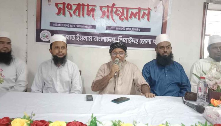 ঝিনাইদহ প্রতিনিধি: ঝিনাইদহে ৬ দফা দাবিতে সংবাদ সম্মেলন করেছে হেফাজতে ইসলাম। গতকাল রোববার বেলা ১১টায় ঝিনাইদহের একটি রেস্তোরাঁয় এ সংবাদ সম্মেলন করে দলটি। সে সময় উপস্থিত ছিলেন-হেফাজতে ইসলাম ঝিনাইদহ শাখার সভাপতি মুফতি আরিফ বিল্লাহ কাসেমী, সহ-সভাপতি শায়েখ যাকারিয়া, যুগ্ম সাধারণ সম্পাদক শায়েখ মাওলানা যুবায়ের হোসেন, সহ-সাংগঠনিক সম্পাদক মুফতি নাজমুল ইসলাম, অর্থ সম্পাদক মুফতি ইলিয়াস সহ দলটির অন্যান্য নেতা কর্মীরা। এ সময় সংবাদ সম্মেলনে প্রেসনোট পাঠ করেন দলের জেলা সভাপতি মুফতি আরিফ বিল্লাহ কাসেমী। এছাড়াও সংবাদ সম্মেলন বক্তব্য রাখেন হেফাজতে ইসলাম ঝিনাইদহ শাখার অন্যান্য নেতা কর্মীরা। জাতিসংঘের মানবাধিকার কমিশনের অফিস স্থাপন বন্ধ করা, ইসলামপন্থীদের নামে কথিত সন্ত্রাস বিরোধী আইনে ২০০৯ ধারায় ভিত্তিহীন জঙ্গী মামলা প্রত্যাহার, ভিত্তিহীন জঙ্গি অপবাদ প্রদান বন্ধ করা, তাবলীগ ও ইসলামি আন্দোলনের উপর নজরদারি বন্ধ, জাতিসংঘের মানবাধিকার কমিশনের নামে দেশের অভ্যন্তরীণ বিষয়ে হস্তক্ষেপ না করা, ইসলামি মূল্যবোধ বিরোধী বিদেশি প্রভাব প্রতিরোধে সরকারী অবস্থান থাকাসহ ধর্ম প্রাণ মানুষের সকল ধরনের নির্যাতন ও মিডিয়া প্রপাগা-া বন্ধ করা। বক্তারা বলেন, বাংলাদেশে জাতিসংঘের মানবাধিকার কমিশনের অফিস স্থাপন করে পশ্চিমারা এ দেশ থেকে ইসলামকে মুছে দেয়ার পায়তারা করছে। বাংলাদেশে তারা বিগত দিনে অনেক জঙ্গি নাটক মঞ্চস্থ করেছেন আর এ মানবাধিকার কমিশনের অফিস স্থাপন করে তা আবারও পুনঃপ্রতিষ্ঠা করতে চাচ্ছে।