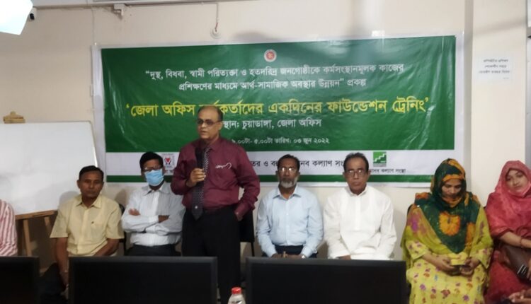 স্টাফ রিপোর্টার: প্রধানমন্ত্রী শেখ হাসিনা মানব কল্যাণে কাজ করে যাচ্ছেন। সরকারি ও বেসরকারি প্রতিষ্ঠানের মাধ্যমে দক্ষ জনগোষ্ঠী গড়ে তোলায় তার লক্ষ্য। বাংলাদেশকে এগিয়ে নেয়ার জন্য দক্ষ জনগোষ্ঠীর বিকল্প নেই। আগামীতে যে দিন আসছে তা অত্যান্ত চ্যালেঞ্জপূর্ণ। দক্ষ জনগোষ্ঠী গড়ে তোলা না গেলে আমরা আমাদের লক্ষ্যে পৌঁছুতে পারবো না। বহুমুখী মানব কল্যাণ সংস্থার জেলা অফিসের কর্মকর্তাদের ফাউন্ডেশন ট্রেনিং অনুষ্ঠানে প্রধান অতিথির বক্তব্যে উপরোক্ত কথা বলেন ইসলামি বিশ্ববিদ্যালয়ের উপাচার্য অধ্যাপক ড. আব্দুস সালাম। গতকাল শুক্রবার সকালে চুয়াডাঙ্গা বহুমুখী মানব কল্যাণ সংস্থার একাডেমি মোড় কার্যালয়ে দিনব্যাপী ফাউন্ডেশন ট্রেনিং অনুষ্ঠিত হয়। ট্রেনিংয়ে চুয়াডাঙ্গা, মেহেরপুর, কুষ্টিয়া, ঝিনাইদহ ও মাগুরা জেলার কর্মকর্তারা অংশ নেয়। অনুষ্ঠানে সংস্থার চেয়ারম্যান প্রধান অতিথি ছিলেন ইসলামি বিশ্ববিদ্যালয়ের উপাচার্য অধ্যাপক ড আব্দুস সালাম আরো বলেন আমাদেরকে হাতে কলমে শিক্ষা নিতে হবে। তা না হলে উন্নত বিশ্বের সাথে তাল মিলিয়ে চলতে পারবো না। বহুমুখী মানব কল্যাণ সংস্থার নির্বাহী চেয়ারম্যান সাংবাদিক আহমেদ পিপুলের সঞ্চালনায় অনুষ্ঠানে বিশেষ অতিথির বক্তব্য রাখেন সমাজসেবা অধিদপ্তরের অতিরিক্ত পরিচালক শহিদুল ইসলাম, চুয়াডাঙ্গা পৌর মেয়র জাহাঙ্গীর আলম মালিক খোকন, জেলা পরিষদের সাবেক প্রশাসক মাহফুজুর রহমান মনজু, চুয়াডাঙ্গা সরকারি কলেজের সাবেক অধ্যক্ষ সিদ্দিকুর রহমান, সমাজসেবার উপ-পরিচালক সিদ্দিকী সোহেলী। এছাড়াও অনুষ্ঠানে উপস্থিত ছিলেন সহকারী পরিচালক আবু তালেব, উপজেলা সমাজসেবা কর্মকর্তা মৌমিতা ইসলাম, শিশু পরিবারের তত্ত্বাবধায়ক রোমানা জামান, বহুমুখী মানব কল্যাণ সংস্থার নির্বাহী পরিচালক সাংবাদিক বিপুল আশরাফ প্রমুখ। এর আগে ভিডিও কনফারেন্সে যুক্ত হয়ে বক্তব্য রাখেন মাগুরা-১ আসনের সংসদ সদস্য অ্যাডভোকেট সাইফুজ্জামান শিখর। দিনব্যাপী অনুষ্ঠানে শিক্ষার্থীদের কিভাবে কম্পিউটার ও ড্রাইভিং প্রশিক্ষণ প্রদান করবেন সেই বিষয়ে ধারণা দেয়া হয়। এ কর্মসূচির আওতায় মাগুরা, কুষ্টিয়া, মেহেরপুর, চুয়াডাঙ্গা ও ঝিনাইদহ জেলায় ড্রাইভিং কাম অটো মেকানিকস এবং কম্পিউটার অফিস এপ্লিকেশন কোর্স চালু হয়েছে। অনুষ্ঠান শেষে বহুমুখী মানব কল্যাণ সংস্থার ৭ সদস্যের চুয়াডাঙ্গায় জেলা কমিটি গঠন করা হয়। কমিটির সভাপতি মনোনীত হলেন অধ্যাপক সিদ্দিকুর রহমান, সহ-সভাপতি মাহফুজুর রহমান মনজু, সাধারণ সম্পাদক জাহাঙ্গীর আলম মালিক খোকন, কোষাধ্যক্ষ আব্দুস সালাম। সদস্যরা হলেন রফিকুর রহমান ও পারভীন লায়লা মালিক।