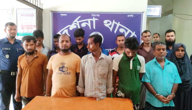 দর্শনা অফিস: দর্শনা থানা পুলিশ রাতভর মাদকবিরোধী ঝটিকা অভিযান চালিয়েছে। দর্শনাসহ আশপাশ এলাকায় এ অভিযান চালিয়ে নারীসহ গ্রেফতার করা হয়েছে ১৩ জনকে। গ্রেফতারকৃতদের মধ্যে গাঁজাসহ একজন, পলাতক আসামি ৯ ও ৩ মাদকাসক্ত রয়েছে। গতপরশু চুয়াডাঙ্গা পুলিশ সুপার জাহিদুল ইসলামের নির্দেশে দর্শনা থানার অফিসার ইনচার্জ এএইচএম লুৎফুল কবীরের নেতৃত্বে গত পরশু মঙ্গলবার রাত ৯ টার দিকে ইন্সপেক্টর (অপরেশন) নিখিল অধিকারী, সেকেন্ড অফিসার এসআই আহম্মদ বিশ্বাসসহ প্রায় ৩০ জন অফিসার-ফোর্স মাদক ও অপরাধ বিরোধী অভিযান চালান দর্শনাসহ আশপাশ এলাকায়। এ অভিযানে পুলিশ দর্শনা পরাণপুর বটতলা থেকে গ্রেফতার করে নাস্তিপুর পূর্বপাড়ার আ. মোমিনের ছেলে রাজুকে (৪৩)। রাজুর দুপায়ের রানে অভিনব কৌশলে রাখা ২ কেজি গাঁজা উদ্ধার করেছে পুলিশ। এ ঘটনায় থানার এসআই শামীম রেজা বাদী হয়ে গতকাল বুধবার দর্শনা থানায় রাজুর বিরুদ্ধে মামলা দায়ের করেছেন। পুলিশের রাতভর ঝটিকা অভিযানে গ্রেফতারকৃতরা হলেন দর্শনা ঈশ্বরচন্দ্রপুরের সোনা মিয়ার ছেলে মন্টু আলী, করিমপুরের জামাত আলীর ছেলে সালাউদ্দিন, কালিদাসপুরের কান্ত দাসের ছেলে সুমন দাস, আকন্দবাড়িয়া তামালতলাপাড়ার ডালিমের ছেলে শুভ, রেজাউল হকের ছেলে তুহিন, সুলতানপুরের সোলায়মান ম-লের ছেলে আশরাফ আলী, দর্শনা ইসলাম বাজারপাড়ার মোহাম্মদ আলীর ছেলে আরিফুল ইসলাম জনি, বেগমপুরের হযরত আলীর ছেলে ঝন্টু, সুলতান, চ-িপুরের আ. হামিদের মেয়ে খুরশিদা ও শৈলমারীর এরেং আলীর ছেলে ফরজ আলীকে। পুলিশের পক্ষ থেকে বলা হয়েছে গ্রেফতারকৃত ১৩ জনের মধ্যে একজনকে গাঁজাসহ, ৯ জন বিভিন্ন মামলার পালাতক আসামি ও ৩ জনকে মাদকাসক্ত অবস্থায় গ্রেফতার করা হয়। গতকালই গ্রেফতারকৃতদের সোপর্দ করা হয়েছে আদালতে। এদিকে দামুড়হুদা, দর্শনা ও জীবননগর সার্কেলের সিনিয়র এএসপি মো. মুন্না বিশ্বাস ও দর্শনা থানার অফিসার এএইচএম লুৎফুল কবীরের নেতৃত্বে মঙ্গলবার বিকেল থেকে সন্ধ্যা পর্যন্ত অর্ধশত অফিসার-ফোর্স নিয়ে মাদক বিরোধী ঝটিকা অভিযান চালান জেলার বহুল আলোচিত মাদকের ঘাটি নামে খ্যাত আকন্দবাড়িয়া গ্রামে। পুলিশ গ্রামের প্রতিটি পাড়ায় অভিযুক্ত মাদককারবারীদের তালিকা ধরে একযোগে এ অভিযান চালায়। অভিযানে ফলাফল শূন্য হলেও চরম আতঙ্ক ছড়িয়ে পড়ে মাদককারবারী ও মাদকাসক্তদের মধ্যে। ওসি কবীর বলেন, মাদক বিরোধী এ অভিযান অব্যাহত থাকবে। আমার থানা এলাকার মাদককারবারীরা হয় এ মাদক ছাড়বে না হলে দর্শনা ছাড়বে।