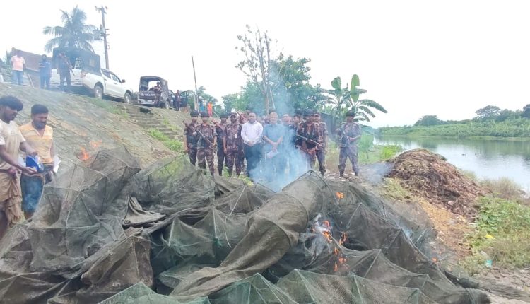 দামুড়হুদার বিভিন্ন স্থানে ৬ বিজিবির বিশেষ টাস্কফোর্সের অভিযান জব্দকৃত ১৫ লাখ টাকার চায়না দুয়ারী জাল পুড়িয়ে ধ্বংস