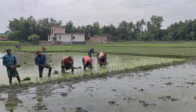দামুড়হুদায় আষাঢ়-শ্রাবণের বৃষ্টিতে রোপা আমন রোপণে ব্যস্ত কৃষকরা
