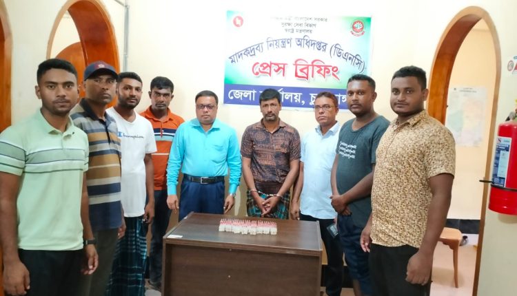 স্টাফ রিপোর্টার: দামুড়হুদা জয়রামপুরের চিহ্নিত মাদক কারবারি কলম আলী মন্ডল ওরফে কল্লোলকে নেশাজাতীয় ইনজেকশনসহ আটক করেছে মাদকদ্রব্য নিয়ন্ত্রণ অধিদফতর। গতকাল রোববার দুপুরে জয়রামপুর গাতিরপাড়ার নিজ বাড়ি থেকে ১৮০ অ্যাম্পুল বুপ্রেনরফাইন ইনজেকশনসহ তাকে আটক করা হয়। পরে মাদকদ্রব্য নিয়ন্ত্রণ আইনে মামলাসহ তাকে দামুড়হুদা মডেল থানায় সোপর্দ করা হয়েছে। আটককৃত কলম আলী মন্ডল ওরফে কল্লোল (৪৩) চুয়াডাঙ্গার দামুড়হুদা উপজেলার জয়রামপুর গ্রামের গাতিরপাড়ার মৃত মফিজ উদ্দিন মন্ডলের ছেলে। মাদকদ্রব্য নিয়ন্ত্রণ অধিদফতর জানিয়েছে, গোপন সংবাদের ভিত্তিতে মাদকদ্রব্য নিয়ন্ত্রণ অধিদফতর চুয়াডাঙ্গা জেলা কার্যালয়ের উপ-পরিদর্শক আকবর হোসেন সঙ্গীয় ফোর্সসহ গতকাল রোববার বেলা আড়াইটার দিকে জেলার দামুড়হুদা উপজেলার জয়রামপুর গ্রামে অভিযান চালান। অভিযানকালে জয়রামপুর গ্রামের গাতিরপাড়ার চিহ্নিত মাদক কারবারি একাধিক মাদক মামলার আসামি কলম আলী মন্ডল ওরফে কল্লোলকে নিজ বাড়ি থেকে আটক করা হয়। এ সময় তার বসতঘর তল্লাশি করে উদ্ধার করা হয় ১৮০ অ্যাম্পুল নিষিদ্ধ ভারতীয় বুপ্রেনরফাইন ইনজেকশন। পরে মাদকদ্রব্য নিয়ন্ত্রণ আইনে মামলাসহ তাকে দামুড়হুদা মডেল থানায় সোপর্দ করা হয়। মাদকদ্রব্য নিয়ন্ত্রণ অধিদফতরের উপ-পরিদর্শক আকবর হোসেন বলেন-আটককৃত কলম আলী মন্ডল ওরফে কল্লোল জেলার একজন চিহ্নিত মাদক কারবারি। এর আগেও একাধিকবার মাদকসহ আমরা তাকে গ্রেফতার করেছি। তার বিরুদ্ধে মাদকের একাধিক মামলা রয়েছে।