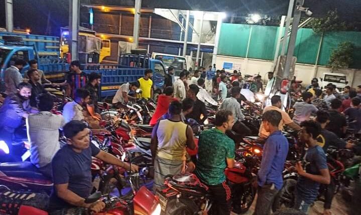 দামুড়হুদা অফিস: জ্বালানি তেলের দাম বাড়ার খবরে চুয়াডাঙ্গার পেট্রলপাম্পগুলোতে সব ধরনের যানবাহনের দীর্ঘ সারি দেখা গেছে। জ্বালানি নিতে ভিড় করা এসব গাড়ির মধ্যে মোটরসাইকেলের সংখ্যাই বেশি। এদিকে দাম বাড়ার খবর শোনার পর কোনো কোনো পেট্রলপাম্প বন্ধ করে দেয়া হয়েছে। আবার অনেক পাম্পে জ্বালানি বিক্রি না করারও অভিযোগ রয়েছে। গতরাত থেকে তেলের দাম বৃদ্ধির খবরে দামুড়হুদা ফিলিং স্টেশনে যানচালকরা ভিড় জমাতে শুরু করে। এদিকে খবরটি সামাজিক যোগাযোগ মধ্যমে দ্রুত গতিতে ছড়িয়ে পড়লে সুযোগ নেন তেল পাম্পগুলো। জানা যায়, গতরাত ১২টার পর থেকে তেলের দাম বৃদ্ধি হওয়ার খবর ছড়িয়ে পড়ে সামাজিক যোগাযোগ মাধ্যমে। এ খবরে সাধারণ চলাচলরত যানবাহন চালকেরাসহ যান চালকরা তাদের যানবাহন নিয়ে ভিড় জমাই দামুড়হুদা ফিলিং স্টেশনে। তার আগেই তেলের দাম বৃদ্ধির খবরে তেল বিক্রি বন্ধ করে দামুড়হুদা ফিলিং স্টেশন। রাত যত বাড়তে থাকে যানবাহনেরও ভিড় জমে তেল পাম্পে। সেখানে তেল কিনতে আসা বাইকারদের অভিযোগ তেল পাম্প থেকে তেল বিক্রি করা হচ্ছে না। তেল পাম্পের কর্মচারীদের কাছে তেল না বিক্রি করার কারণ জানতে চাওয়া হলে তাঁরা বলেন, মালিক আমাদেরকে তেল বিক্রি করতে নিষেধ করেছেন। তাঁরা আরও বলেন, আমাদের পাম্পে তেলের কোনো ঘাটতি নেই। তেলের দাম বাড়ছে নতুন দাম নির্ধারণ হবে তাঁর পর আবার তেল বিক্রি শুরু করবো। এদিকে, তেল পাম্প মালিকের এধরণের জনদুর্ভোগ সৃষ্টির জন্য অনেক যানচালকদের পড়তে হয়েছে ভোগান্তিতে। তেল পাম্পটিতে কর্মরত কর্মচারীদের কাছে পাম্প মালিক বা ম্যানেজারের মোবাইল নম্বর চাইলে তারা দেয়নি। এবিষয়ে দামুড়হুদা উপজেলা সহকারী কমিশনার (ভূমি) সুদীপ্ত কুমার সিংহ’র সাথে কথা বললে তিনি বলেন, তেলের দাম বাড়ছে এমন কোনো পরিপত্র আমরা এখনো পাইনি। চুয়াডাঙ্গা জেলা প্রশাসক স্যারের সাথে কথা বলে দেখছি।