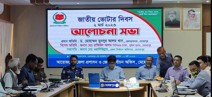 মেহেরপুর অফিস জানিয়েছে, মেহেরপুরে জাতীয় ভোটার দিবস উপলক্ষ্যে আলোচনাসভা অনুষ্ঠিত হয়েছে। গতকাল বৃহস্পতিবার সকালে জেলা প্রশাসকের সম্মেলন কক্ষে জেলা প্রশাসন ও জেলা নির্বাচন কমিশনের আয়োজনে এ আলোচনাসভা অনুষ্ঠিত হয়।