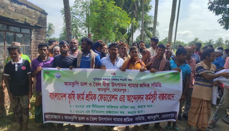 আমঝুপি প্রতিনিধি:বাংলাদেশ কৃষি ফার্ম শ্রমিক ফেডারেশনের আন্দোলন কর্মসূচি বাস্তবায়নে বিএডিসি, ২০১৫ সালের নীতিমালা বাতিল এবং ২০১৭ সালের নীতিমালা বাস্তবায়নের দাবিতে আমঝুপিতে বিক্ষোভ মিছিল ও স্মারকলিপি প্রদান করেছে শ্রমিকরা। আজ রবিবার দুপুরে আমঝুপি সবজি বীজ ও ডাল তৈল উৎপাদন খামার শ্রমিক সমিতির উদ্যোগে কর্মসূচি পালন করা হয়।