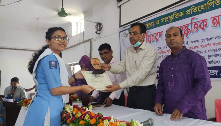 চুয়াডাঙ্গা সরকারি কলেজে প্রতিযোগিতার পুরস্কার বিতরণী অনুষ্ঠানে অধ্যক্ষ