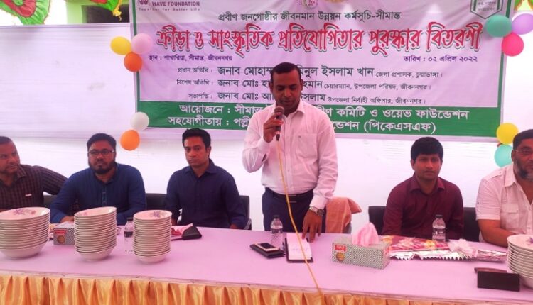 শাখারিয়া প্রবীণ সামাজিক কেন্দ্রে ইউএনও আরিফুল ইসলাম রাসেলের সভাতিত্বে অনুষ্ঠিত পুরস্কার বিতরণী অনুষ্ঠানে বিশেষ অতিথি ছিলেন উপজেলা সহকারী কমিশনার (ভূমি) হুমায়ুন কবির, প্রেসক্লাব সভাপতি মুন্সী মাহবুবুর রহমান বাবু, সীমান্ত ইউপি চেয়ারম্যান ইসাবুল ইসলাম মিল্টন ও ওয়েভের উপ-সমš^য়সকারী কামরুজ্জামান যুদ্ধ। ওয়েভ ফাউণ্ডেশনের কর্মকর্তা রবিউল ইসলাম বকুলের সঞ্চলনায় অনুষ্ঠানে শুভেচ্ছা বক্তব্য রাখেন সীমান্ত ইউনিয়ন প্রবীণ কমিটির সভাপতি সাবেক ইউপি চেয়ারম্যান শাহজাহান আলী। সাধারণ সম্পাদক আজিলুল হক ও জাকির হোসেন অনুষ্ঠানে বক্তব্য রাখেন। পল্লী কর্ম-সহায়ক ফাউণ্ডেশন পিকেএসএফ’র সহযোগিতায় ওয়েভ ফাউণ্ডেশন ও সীমান্ত ইউনিয়ন প্রবীণ জনগোষ্ঠীর জীবনমান উন্নয়ন কর্মসূচি এ ক্রীড়া ও সাংস্কৃতিক অনুষ্ঠানের আয়োজন করে বলে জানা যায়। অনুষ্ঠানে সমš^য়কারীর দায়িত্ব পালন করেন ওয়েভের আশরাফুল ইসলাম লিটন।