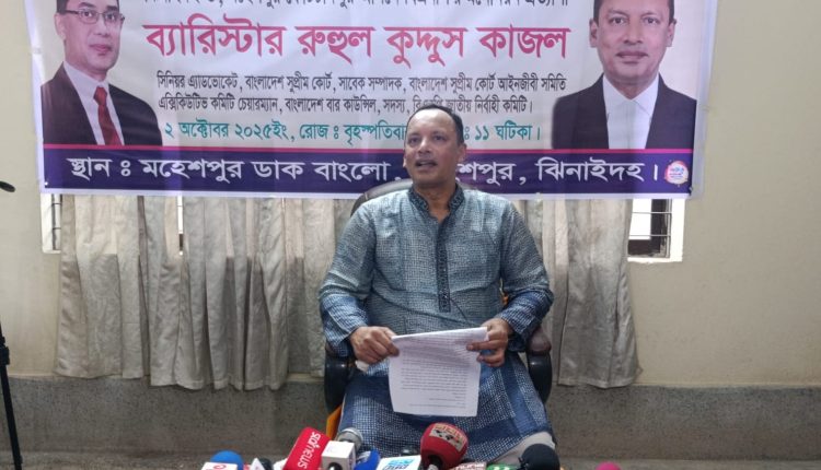 মহেশপুর প্রতিনিধিঃঝিনাইদহরে মহেশপুরে সাংবাদিকদের সাথে মত বিনিময় করেন বাংলাদেশ সুপ্রিম কোর্টের আইনজীবী সমিতির বার কাউন্সিলের চেয়ারম্যান ও বিএনপির কেন্দ্র জাতীয় নির্বাহী কমিটির সদস্য ব্যারিস্টার মোঃ রুহুল কুদ্দুস কাজল।