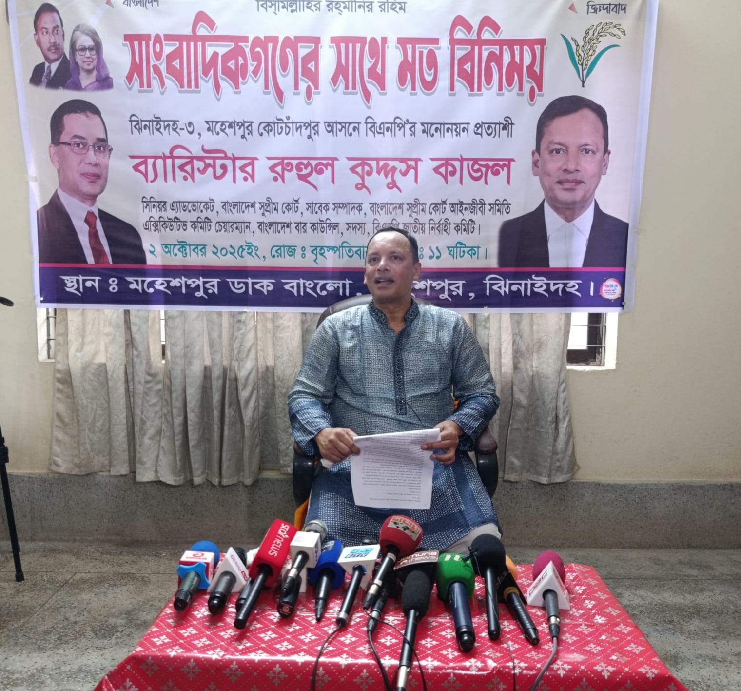 বৃহস্পতিবার সকালে ডাক বাংলো হলরুমে এই মতবিনিময় সভা অনুষ্ঠিত হয়। সাংবাদিকদের সাথে মতবিনিময় কালে তিনি বলেন, ঝিনাইদহ-৩ আসনের আমি একজন সম্ভাব্য মনোয়ন প্রত্যাশী। আমি বাংলাদেশ জাতীয়বাদী দল বিএনপির জাতীয় নির্বাহী কিমিটির সদস্য,পেশায় আমি একজন আইনজীবী একজন ব্যারিস্টার। আমি ছাত্র জীবনে মহেশপুর উপজেলা ছাত্রদলের সাধারণ সম্পাদক ছিলাম। ছাত্রদলের মধ্যে দিয়ে রাজনীতি শুরু তাই আমি রাজনৈতিক ভাবে মহেশপুর কোটচাঁদপুরে মানুষরে জন্য কাজ করতে চাই। একজন সংসদ সদস্যের মূল দায়িত্ব হলো আইন প্রণয়ন করা। আইন পেশায় আমার সুদীর্ঘ অভিজ্ঞতার আলোকে আমি সেক্ষেত্রে যথাযথ দায়িত্ব পালন করতে পারবো বলে আশা রাখি। আমরা বিশ্বাস করি, উন্নয়ন শুধুমাত্র রাস্তা-ঘাট বা ভবন নির্মাণের মধ্যে সীমাবদ্ধ নয়। এটি মানুষের নীতি-নৈতিকতা, শিক্ষা, স্বাস্থ্য, কর্মসংস্থান, কৃষি ও সামাজিক নিরাপত্তার সাথে নিবিড়ভাবে জড়িত। এ অঞ্চলের মানুষ দীর্ঘদিন ধরে অবহেলিত, তাদের মৌলিক অধিকার ও উন্নয়নের দাবিগুলো জাতীয় পর্যায়ে সঠিকভাবে প্রতিফলিত হয়নি। তবে একথা সত্য যে, বিএনপি দলীয় সাবেক সংসদ সদস্য শহীদুল ইসলাম মাস্টার ১৯৯১ সালে নির্বাচিত হওয়ার পরে এ এলাকায় ব্যাপক অবকাঠামোগত উন্নয়ন হয়েছিল। ২০০৮ সালের পরে জনগণের ম্যান্ডেটহীন প্রতিনিধিরা এই ধারা অব্যাহত রাখতে ব্যর্থ হয়েছেন। ফলে উন্নয়ন মুখ থুবড়ে পড়েছে। আমি দল থেকে মননীত হয়ে সংসদ সদস্য নির্বাচিত হলে সাবেক এমপি শহীদুল ইসলাম মাষ্টারে মত উন্নয়নের ধারা অব্যাহিত রাখবো। পিআর পদ্ধতিতে নির্বাচন নিয়ে সাংবাদিকদের প্রশ্রের উত্তরে তিনি বলেন,বাংলাদেশের সংবিধান অনুয়ায়ী পিআর পদ্ধতিতে নির্বাাচন হওয়ার কোন সুযোগ নেই। এখন যে অবস্থায় আছে সরকার চাইলে কালই নির্বাচন করা সম্ভব এতে সংবিধানের কোন ব্যাপ্তই ঘটবে না। মানুষ কেনো তাকে ভোট দিবেন এমন প্রশ্রের উত্তরে বলেন,আমি মহেশপুরে ছেলে। ব্যারিস্টার হিসাবে আমি মহেশপুর কোটচাঁদপুর মানুষের বিপদে আপদে সবসময় পাশে ছিলাম। আইনি সহযোগিতা করেছি,অসহায় বাবার পাশে থেকে মেয়ের বিয়ে দেওয়া মত অর্থ দিয়ে আর্থিক ভাবে সাহায়্য করেছি। আমার কাছ থেকে কেউ কখনো সেবা না পেয়ে ফেরি আসেনি। তার ধারাবাহিকতায় সংসদ সদস্য হয়ে মহেশপুর কোটচাঁদপুর মানুষের বৃহত্তর সেবা করতে চাই। যা একজন ব্যারিস্টার হিসাবে তা করা সম্ভব নয়। মহেশপুর সীমান্তবর্তী এলাকা এখানে মাদকচোরা চালান এবং সীমান্ত হত্যাকান্ড হয় এই প্রশ্রে তিনি বলেন এটি একটি আন্তরাষ্ট্র সমস্যা। সেক্ষত্রে আমি মনে করি ভারত আমাদের সাথে যে বিগবিগার আচারণ করেছে এতে আমরা যদি ভারতের সাথে বাংলাদেশের জনগণ টু জনগণের সম্পর্ক স্থাপিত করতে পারি তাহলে এই ধরণের সীমান্ত হত্যা