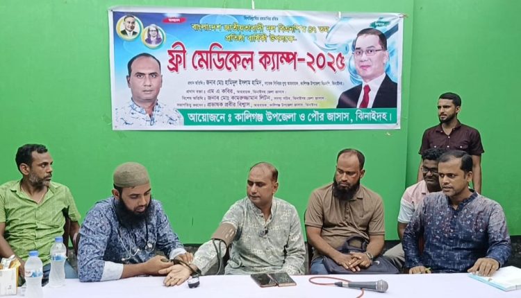 ঝিনাইদহ প্রতিনিধি:ঝিনাইদহের কালীগঞ্জে বিএনপির ৪৭ তম প্রতিষ্ঠাবার্ষিকী উপলক্ষে বিএনপির কেন্দ্রীয় কর্মসূচির অংশ হিসেবে জাসাসের উদ্যোগে বিএনপির দলীয় কার্যালয়ের সামনে ফ্রি মেডিকেল ক্যাম্প অনুষ্ঠিত হয়। ফ্রি মেডিকেল ক্যাম্প অনুষ্ঠানে প্রধান অতিথি হিসেবে উপস্থিত ছিলেন কালীগঞ্জ উপজেলা বিএনপির সাবেক সিনিয়র যুগ্ম আহবায়ক হামিদুল ইসলাম হামিদ। প্রধান বক্তা হিসেবে উপস্থিত ছিলেন জেলা জাসাস এর আহবায়ক এম,এ কবির, সভাপতিত্ব করেন উপজেলা জাসাস এর আহবায়ক প্রভাষক প্রবীর বিশ্বাস।