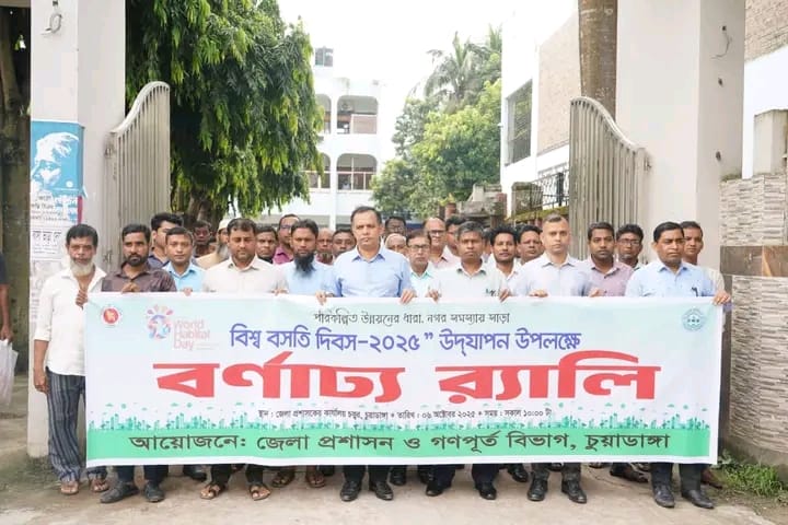 স্টাফ রিপোর্টার:পরিকল্পিত উন্নয়নের ধারা, নগর সমস্যার সাড়া’ প্রতিপাদ্যে চুয়াডাঙ্গায় বিশ্ব বসতি দিবস পালিত হয়েছে। এ উপলক্ষে বর্ণাঢ্য শোভাযাত্রা ও আলোচনা সভা অনুষ্ঠিত হয়েছে। সোমবার সকাল ১০ টায় জেলা প্রশাসক কার্যালয় চত্বর থেকে শোভাযাত্রাটি বের হয়ে শহরের কোর্ট মোড় ঘুরে একইস্থানে গিয়ে শেষ হয়।
