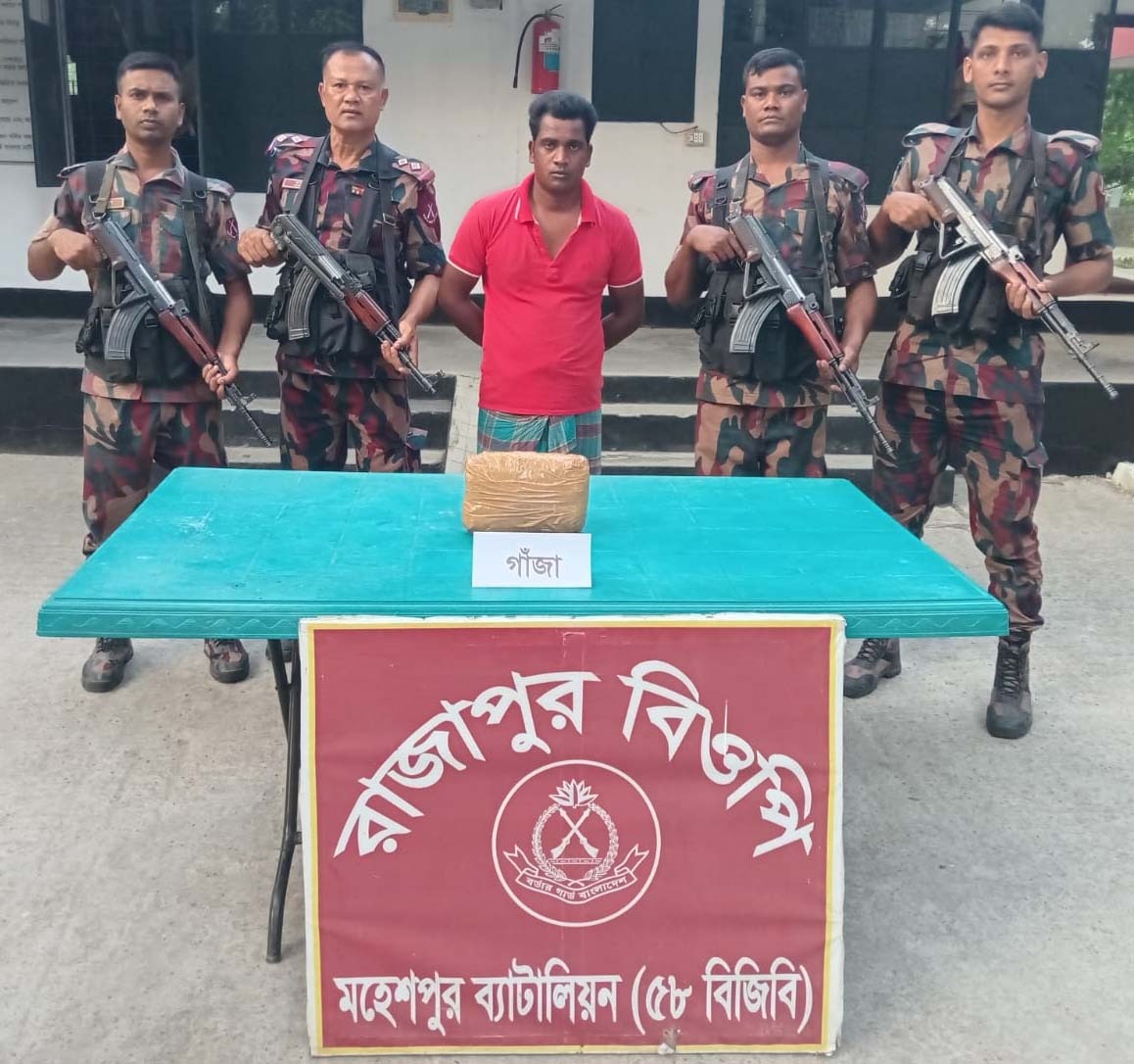 মহেশপুর ৫৮ বিজিবি ব্যাটালিয়ন সূত্রে জানা যায়, রাজাপুর বিওপির নায়েব সুবেদার তাপস কুমার সরকারের নেতৃত্বে বিজিবির একটি টিম সোমবার বিকাল ৫টার দিকে রাজাপুর বিওপির দায়িত্বপূর্ণ এলাকার সীমান্ত পিলার-৭২-এমপি হতে আনুমানিক ০২ কিলোমটির বাংলাদেশের অভ্যন্তরে সন্তোষপুর কমিউনিটি ক্লিনিকের সামনে রাস্তার ওপর মাদক বিরোধী অভিযান পরিচালনা করা হয়। অভিযানকালে কেজি ভারতীয় গাঁজাসহ জীবননগর উপজেলার পাথিলা গ্রামের মন্টু মিয়ার ছেলে জুয়েল আহম্মেদকে (৩০) আটক করা হয়। আটককৃতকে মাদকদ্রব্যসহ আসামীকে মাদক দ্রব্য নিয়ন্ত্রণ আইনে মামলা দিয়ে জীবননগর থানায় সোপর্দ করা হয়েছে। মঙ্গলবার দুপুরে গয়েশপুর বিওপির নায়ে জসিম উদ্দিনের নেতৃত্বে বিজিরি একটি টিম গয়েশপুর বিওপির দায়িত্বপূর্ণ এলাকার সীমান্ত পিলার-৬৭-এমপি হতে আনুমানিক ১০০ গজ বাংলাদেশ