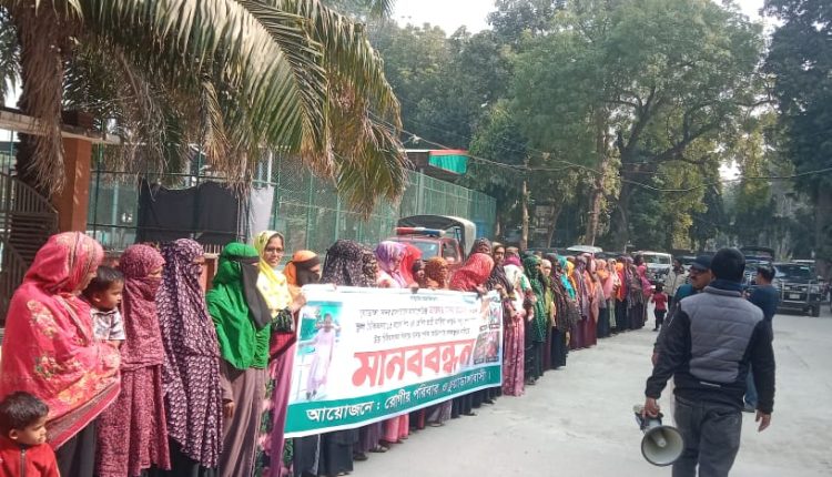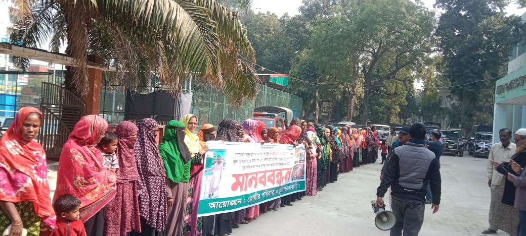 মানববন্ধন থেকে দ্রুত তদন্ত কমিটি গঠন করে দায়ীদের বিরুদ্ধে প্রয়োজনীয় আইনগত ব্যবস্থা গ্রহণের জোর দাবি জানানো হয়।