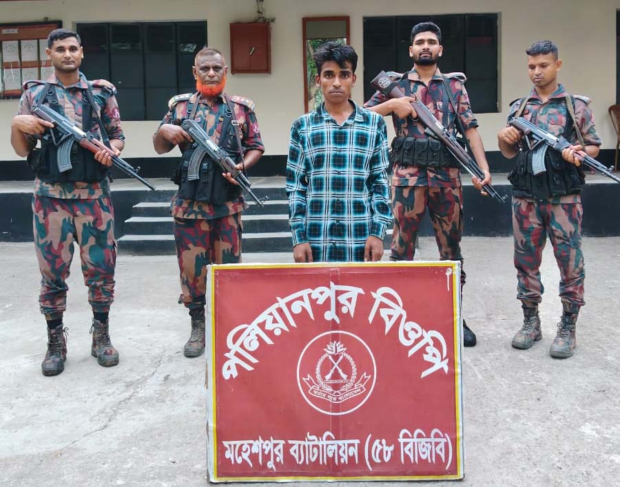 মহেশপুর প্রতিনিধি: ঝিনাইদহের মহেশপুর ব্যাটালিয়ন (৫৮ বিজিবি) সীমান্ত এলাকায় পৃথক অভিযান চালিয়ে এক ভারতীয় নাগরিকসহ ১১ জনকে আটক করেছে। গতকাল রোববার সকাল থেকে দুপুর পর্যন্ত সীমান্তের বাঘাডাংগা, পলিয়ানপুর ও কুসুমপুর এলাকায় এসব অভিযান চালানো হয়। এ সময় বিপুল পরিমাণ ভারতীয় মদ উদ্ধার করে বিজিবি। বিজিবি সূত্র জানায়, রোববার দুপুর ১টা ২০ মিনিটে বাঘাডাংগা বিওপির হুদাপাড়া গ্রামের একটি ভুট্টা খেত থেকে জালিম শেখ (৫২) নামে এক ভারতীয় নাগরিককে আটক করা হয়। তিনি পশ্চিমবঙ্গের হুগলী জেলার পানডুয়া থানার বাঁটিকা গ্রামের নাসির উদ্দিন শেখের ছেলে। অবৈধভাবে দালালের মাধ্যমে তিনি ভারতে যাওয়ার চেষ্টা করছিলেন। তার কাছ থেকে একটি ভারতীয় পাসপোর্ট, আধার কার্ড, মোবাইল ফোন এবং নগদ ৮৪৫ রুপি উদ্ধার করা হয়েছে । তাকে মহেশপুর থানায় হস্তান্তর করা হয়েছে। একই দিনে অবৈধভাবে সীমান্ত পারাপারের সময় ১০ জন বাংলাদেশী নাগরিককে আটক করা হয়। ভোর ৬টা ১০ মিনিটে পলিয়ানপুর সীমান্ত থেকে রবিউল ইসলাম (২৮) নামে এক যুবকসহ একজন নারী ও দুই শিশুকে আটক করা হয়। সকাল ১০টার দিকে কুসুমপুর সীমান্তের পিপুলবাড়িয়া গ্রাম থেকে আটক করা হয় ফরিদপুরের মো. সাগর ফকিরকে (২৭)। এছাড়া দুপুর ১টা ২০ মিনিটে বাঘাডাংগা সীমান্ত থেকে আরও ৫ জনকে আটক করা হয়। আটককৃতরা হলেন, ঠাকুরগাঁওয়ের মো. রাসেল (৩৭), গোপালগঞ্জের সুমন গোলদার (২০), বাগেরহাটের অশোক কুমার মন্ডল (৫২), রাজবাড়ীর শামীম (৪৬) এবং ঝিনাইদহের কালীগঞ্জ উপজেলার চিত্ত রঞ্জন বিশ্বাস (৩৯)। আটককৃতদের মহেশপুর থানায় হস্তান্তরের প্রক্রিয়া চলছে। এদিকে সকাল পৌনে ৮টার দিকে রাজাপুর বিওপি সংলগ্ন হালদারপাড়া এলাকায় মাদকবিরোধী অভিযান চালিয়ে পরিত্যক্ত অবস্থায় ২২ বোতল ভারতীয় মদ উদ্ধার করে টহল দল। মহেশপুর ব্যাটালিয়ন (৫৮ বিজিবি) এর সহকারী পরিচালক মুন্সী ইমদাদুর রহমান পৃথক দুটি প্রেস বিজ্ঞপ্তির মাধ্যমে এসব তথ্য নিশ্চিত করেছেন।