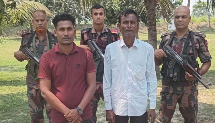 মহেশপুর প্রতিনিধি: ঝিনাইদহের মহেশপুর সীমান্ত দিয়ে অবৈধভাবে বাংলাদেশ থেকে ভারতে যাওয়ার সময় নারী ও শিশুসহ ১৭জনকে আটক করেছে বিজিবি। শুক্রবার বিকেল থেকে শনিবার (১০ মে) দুপুর পর্যন্ত উপজেলার বাঘাডাঙ্গা, খোশালপুর ও পলিয়ানপুর সীমান্ত থেকে তাদের আটক করা হয়। গতকাল শনিবার সন্ধ্যায় খালিশপুর ৫৮ বিজিবির সহকারী পরিচালক মোহাম্মদ সাইফুল ইসলাম স্বাক্ষরিত পাঠানো এ প্রেসবিজ্ঞপ্তিতে এসব তথ্য জানানো হয়। ৫৮ বিজিবি জানায়, কিছু বাংলাদেশী মহেশপুর সীমান্ত দিয়ে অবৈধভাবে বাংলাদেশ থেকে ভারতে যাওয়ার চেষ্টা করছে এমন সংবাদের ভিত্তিতে সীমান্ত এলাকায় অভিযান পরিচালনা করা হয়। সেসময় বাঘাডাঙ্গা গ্রাম থেকে নারী ও শিশুসহ ৬ জন, খোশালপুর গ্রাম থেকে ৩ জন ও পলিয়ানপুর গ্রাম থেকে ৮ জনকে আটক করা হয়। বিজিবি আরও জানায়, আটককৃতদের বাড়ি খুলনা, মাদারীপুর, নোয়াখালী জেলার বিভিন্ন গ্রামে। আটককৃতদের বিরুদ্ধে বিজিবির পক্ষ থেকে থানায় মামলা করে মহেশপুর থানায় সোপর্দ করা হয়েছে।