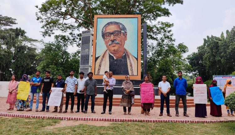 বিশ্ববিদ্যালয়ের ছাত্রী গাংনীর উর্মি হত্যার বিচারের দাবিতে ইবিতে মানববন্ধন