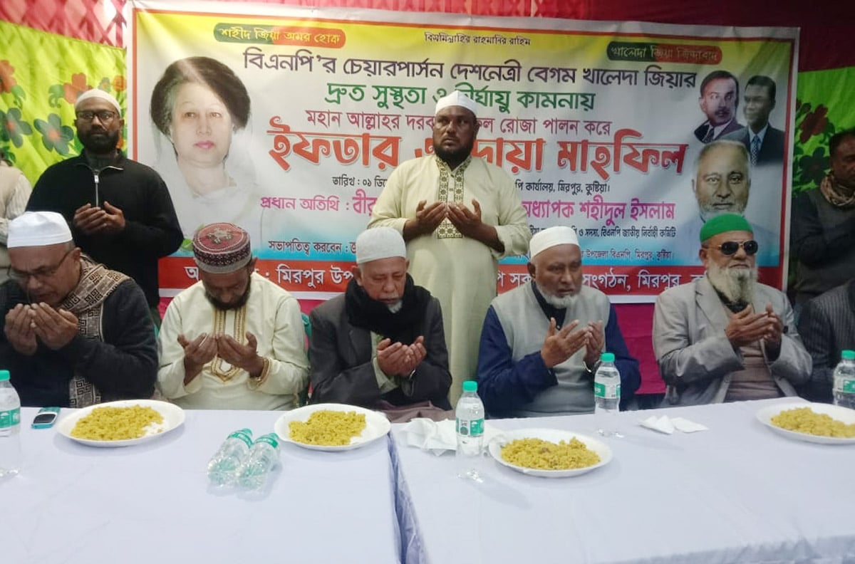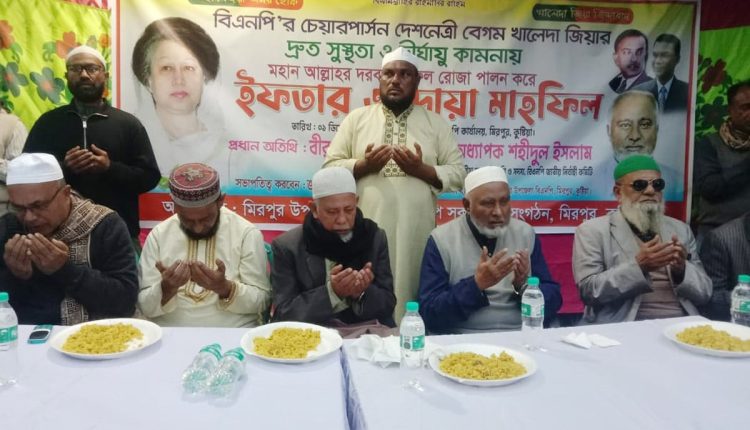 এর আগে সাবেক সংসদ সদস্য অধ্যাপক শহীদুল ইসলামের নির্দেশে দলীয় নেত্রী বেগম খালেদা জিয়ার রোগমুক্তি কামনায় নেতাকর্মীদের নফল রোজা রাখার আহ্বান জানানো হয়। আহ্বানে সাড়া দিয়ে নেতাকর্মীরা নফল রোজা রাখেন ও সম্মিলিতভাবে ইফতারে অংশ গ্রহণ করেন। এসময় উপজেলা বিএনপি’র সভাপতি আশরাফুজ্জামান শাহীন, সিনিয়র সহ সভাপতি খন্দকার ওমর ফারুক কুদ্দুস, সাধারণ সম্পাদক খন্দকার টিপু সুলতান, পৌর বিএনপি’র সভাপতি আব্দুর রশিদ, উপজেলা বিএনপি’র সাংগঠনিক সম্পাদক এনামুল হক বাবু, উপজেলা যুবদলের সাবেক সভাপতি আজাদুর রহমান আজাদ, উপজেলা যুবদলের আহবায়ক সুলতান আলী, পৌর যুবদলের আহবায়ক সংগ্রাম খান জিল্লু প্রমুখ উপস্থিত ছিলেন।