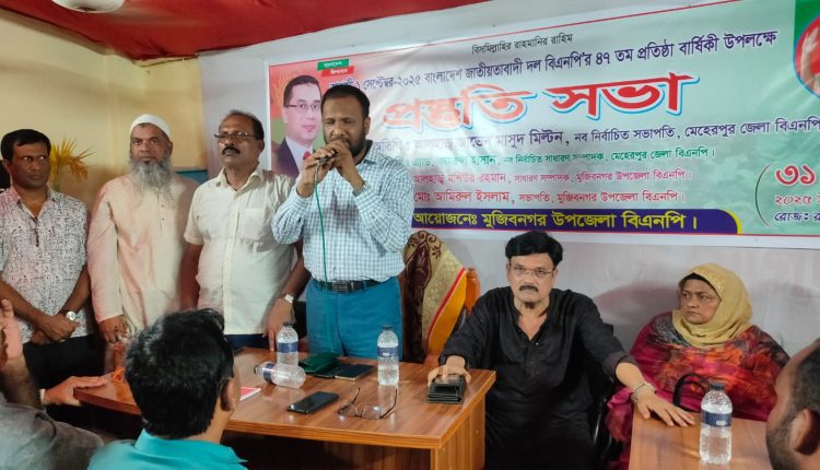 মুজিবনগরে বিএনপির প্রতিষ্ঠা বার্ষিকী উপলক্ষে প্রস্তুতি সভা অনুষ্ঠিত
