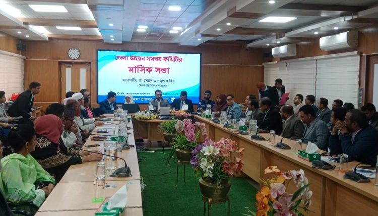 মেহেরপুর প্রতিনিধি:মেহেরপুর জেলা প্রশাসনের উদ্যোগে জেলা উন্নয়ন সমন্বয় কমিটির মাসিক সভা অনুষ্ঠিত হয়েছে। রবিবার সকালে জেলা প্রশাসকের সম্মেলন কক্ষে এ সভা অনুষ্ঠিত হয়।